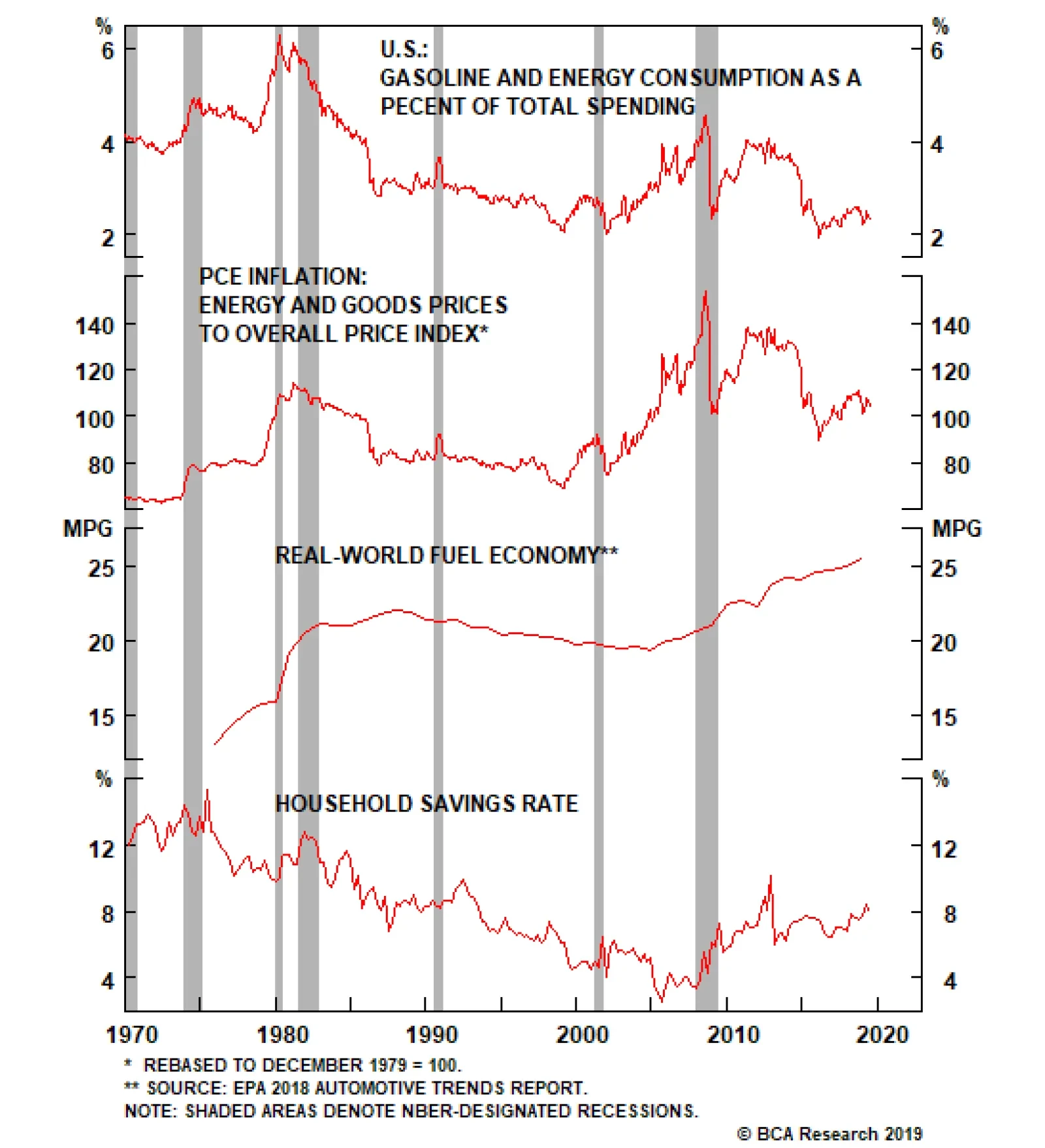 Highlights The attack on Saudi Arabian energy facilities brought oil price shocks back onto investors’ radar screens: Benchmark crude prices in Europe and the U.S. blasted higher following the September 14th attacks on Saudi oil installations. Although the initial price spike largely unwound, the incident demonstrated that oil infrastructure is vulnerable: Saudi officials say output will be restored sooner than markets initially feared, but oil production is now in play for bad actors. The probability of supply-driven price shocks has increased. How vulnerable is the U.S. economy to an oil price shock?: A whole heck of a lot less than it was at the time of the 1973-74 oil embargo. The U.S. is the world’s largest oil producer, and is on its way to becoming a net exporter. Higher oil prices now amount to much more than a tax on U.S. households and corporations. Feature On Saturday, September 14th, Saudi Arabia’s Abqaiq crude-oil processing facility and its Khurais oil field were struck by air attacks that caused multiple explosions. Yemeni forces claimed responsibility, in retaliation for Saudi Arabia’s involvement in its protracted civil war, though the Saudi and U.S. governments asserted that Iran was to blame. As our Commodity & Energy and Geopolitical Strategy colleagues have written, Iran’s involvement makes the situation more ticklish.1 It is unclear where escalating rounds of provocations between the U.S. and Iran might end up, but the geopolitical, energy and economic impacts could be quite serious. There are a lot of moving parts, and we will not rehash our colleagues’ analysis here. From the U.S. Investment Strategy perspective, the biggest takeaway is that Middle Eastern oil infrastructure is more vulnerable to malign state and non-state actors than markets previously realized. It is remarkable that the world’s single most important oil processing facility could be so easily and precisely targeted, though anyone who began flying after September 11th would likely be amazed to learn that passengers once boarded planes without anyone giving the contents of their baggage a second thought. Regardless of how quickly Abqaiq operations are fully restored, Middle East oil infrastructure has been exposed as a soft target. The net economic impact of higher oil prices is the sum total of a broad range of gross subsidiary impacts. The global oil market is therefore more vulnerable to shocks from unplanned supply outages than previously assumed, and should begin to price in a terrorism premium. Any given economy’s exposure to oil price shocks is a more important consideration than it was before the attack on Aramco operations. In this Special Report, we examine the U.S. economy’s susceptibility to an oil price shock. The good news is that we find the U.S. to be considerably less vulnerable to an oil price shock than it was at the time of the Arab oil embargo; the net “tax” from higher oil prices is a good bit lower than it was then, and it is no longer exclusively paid to foreign entities. Six Channels Of Economic Impact We count six primary channels through which oil prices impact the U.S. economy: consumption, capital expenditures, corporate profits, the trade balance, employment and financial conditions (Figure 1). Higher oil prices are unequivocally bad for consumption, because they reduce households’ discretionary income. They should be a net positive for capital expenditures, because oil exploration and production is a capital-intensive pursuit that would likely outweigh incremental cutbacks in investment by businesses in the rest of the economy. They directly increase input costs for the wide range of goods that incorporate petroleum, and the goods and services that use oil as fuel, though other businesses’ reduced profits will be offset somewhat by domestic oil producers’ increased profits. As long as the U.S. remains a net oil importer, they will act to widen the trade deficit; once it becomes a net exporter, possibly within the next few years, they will narrow it. Their net impact on employment and financial conditions is mixed. Figure 1Oil Prices And The Economy