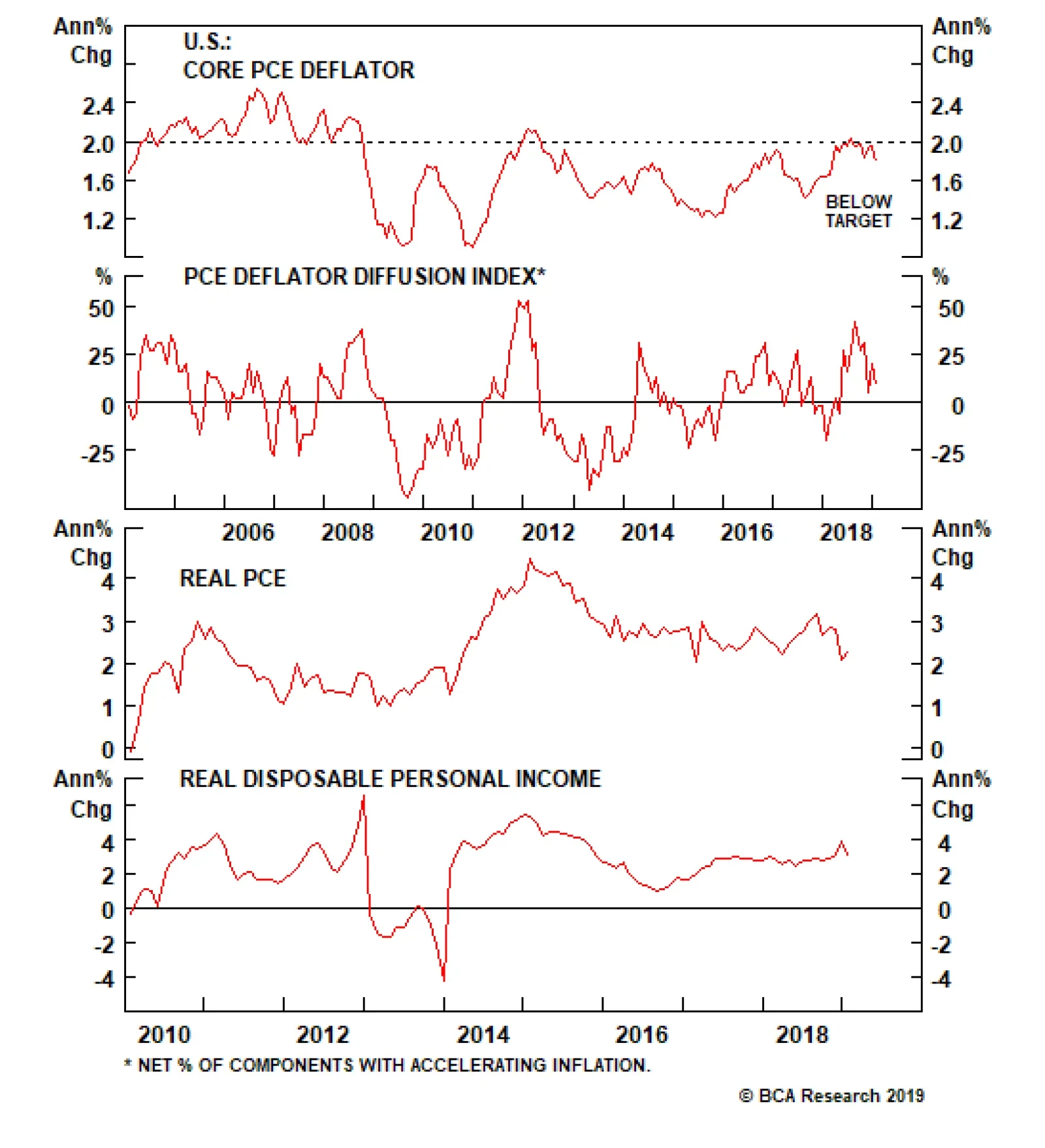 Doug Peta, Senior Vice President U.S. Investment Strategy dougp@bcaresearch.com Footnotes 1 Please see the U.S. Investment Strategy Special Reports, “Housing: Past, Present And (Near) Future,” and “Housing Seminar,” published November 19 and December 3, 2018, respectively, at usis.bcaresearch.com. 2 NAIRU, the non-accelerating-inflation rate of unemployment (also known as the natural rate of unemployment), is the unemployment rate that can be sustained over time without causing the economy to overheat. 3 Our model estimates that equilibrium fed funds is currently around 3%, will be around 3.25% by the middle of 2019, and will settle near 3⅜% at year end. 4 Before the 2017 tax reform act, corporations faced a top marginal rate of 35%, and could deduct interest expense without limit. After-tax interest expense for large corporations amounted to (1-.35), or 65% of the pre-tax expense. Now that the top marginal rate is 21%, after-tax interest expense is (1-.21), or 79% of pre-tax expense.