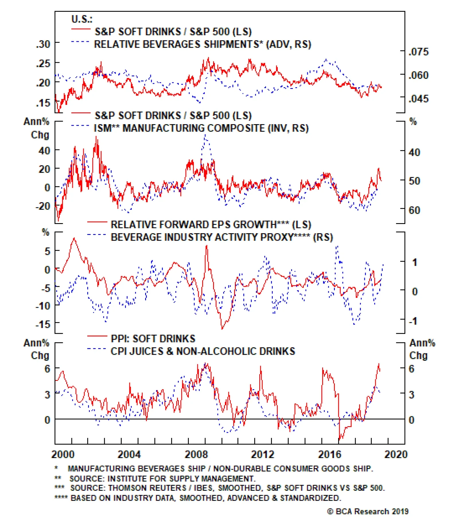 Neutral As we continue shifting our portfolio away from cyclical and toward defensive exposure, we are upgrading the S&P soft drinks index from underweight to neutral, locking in a relative gain of 5.5% since inception…