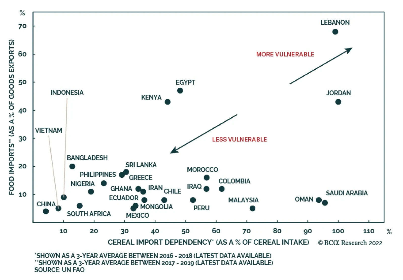 High food and fertilizer prices could morph into food crises in several developing nations. A Special Report from our Emerging Markets Strategy team reckons that Lebanon, Egypt, Kenya, Peru, Pakistan, and Sri Lanka are most at-…