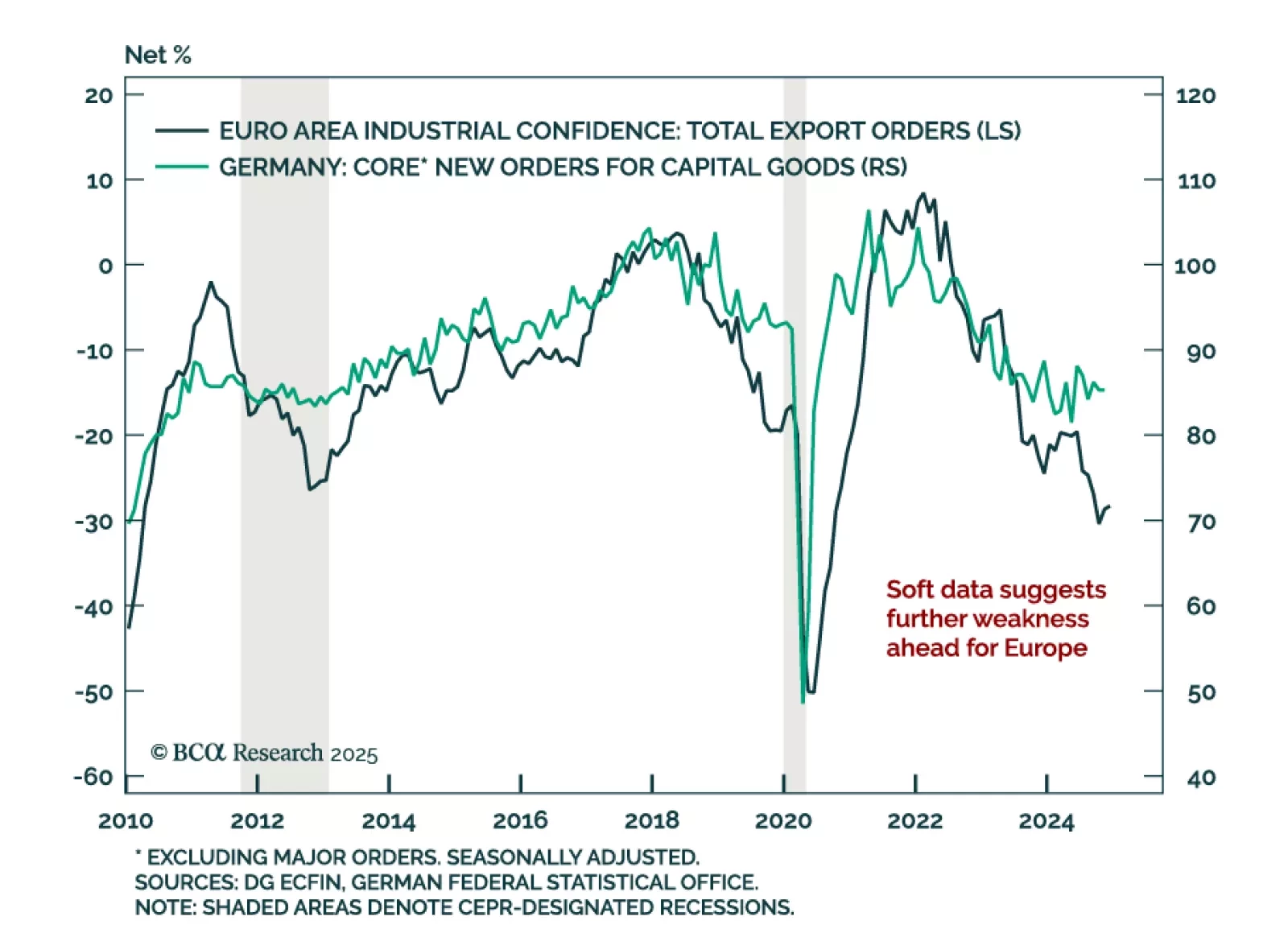 November factory orders in Germany widely missed estimates, falling by 5.4% m/m, worsening the 1.5% October decline. Excluding major orders, which often distort the overall picture, core new orders fell 1.7% y/y after growing 5.7% in…