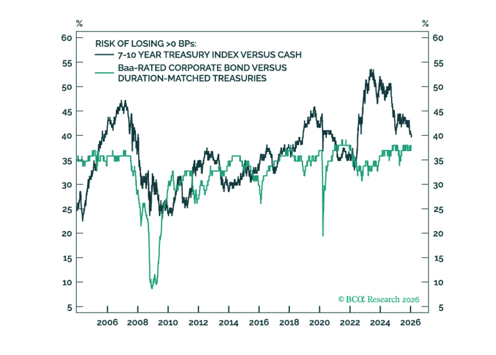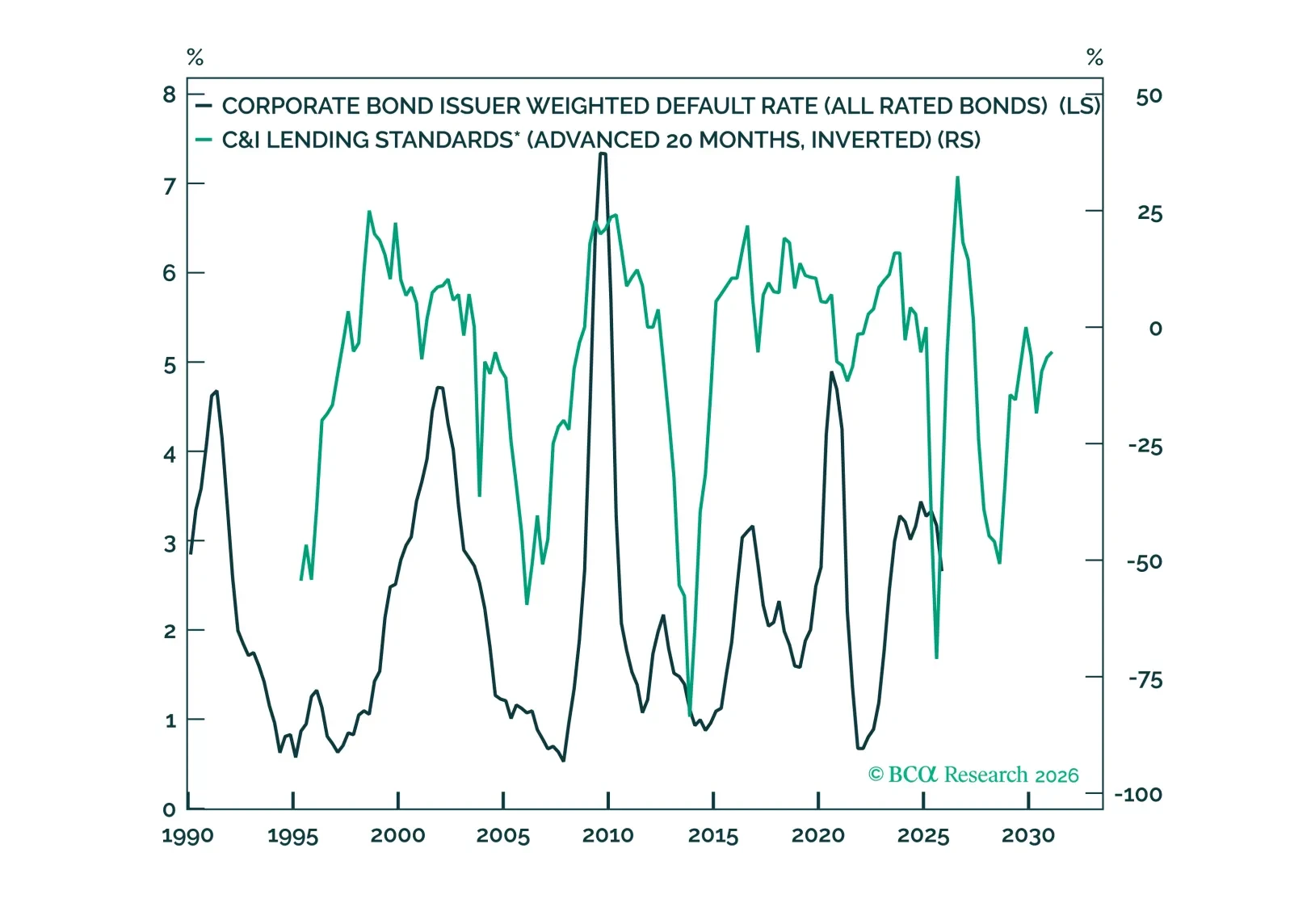 The turmoil in private credit is a wild card, but our traditional suite of credit cycle indicators does not point to an imminent spread-widening episode. We reiterate our benchmark weightings on Treasuries, investment-grade and high-yield corporate bonds.