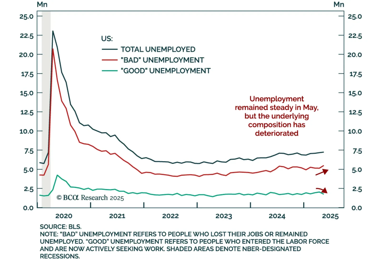 The May US jobs report reinforces our defensive stance as labor momentum is slowing even if not collapsing. Payrolls rose 139k, beating estimates, but decelerating from a downwardly revised 147k. Two-month revisions cut 95k jobs,…