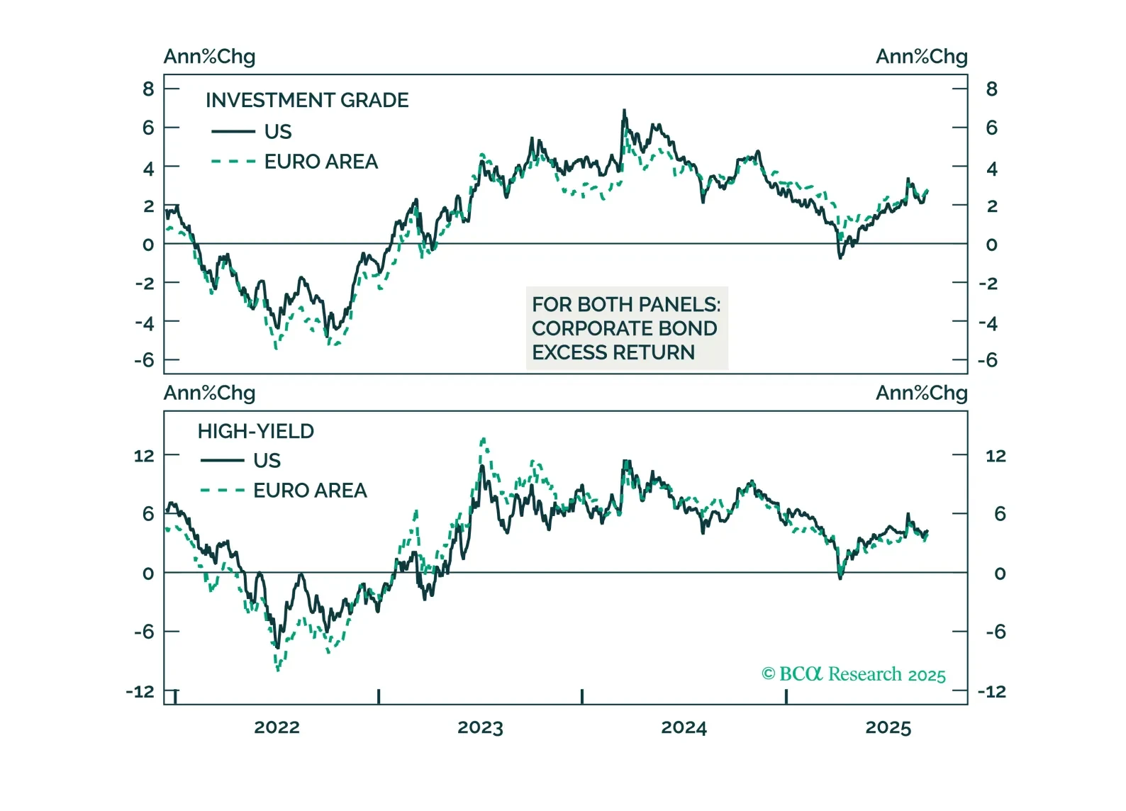 European corporate bond spreads have more room to narrow in the near term, but their next big leg is up. After a significant widening in option-adjusted spreads caused by stagflation fears in the US and “Liberation Day,”…