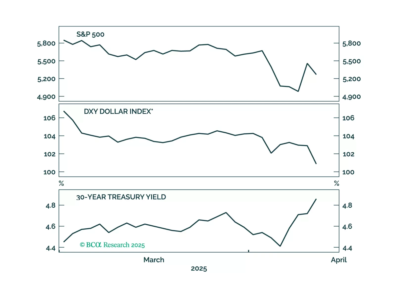The combination of dollar weakness and rising US yields suggests global investors are questioning the safe-haven status of US Treasuries.