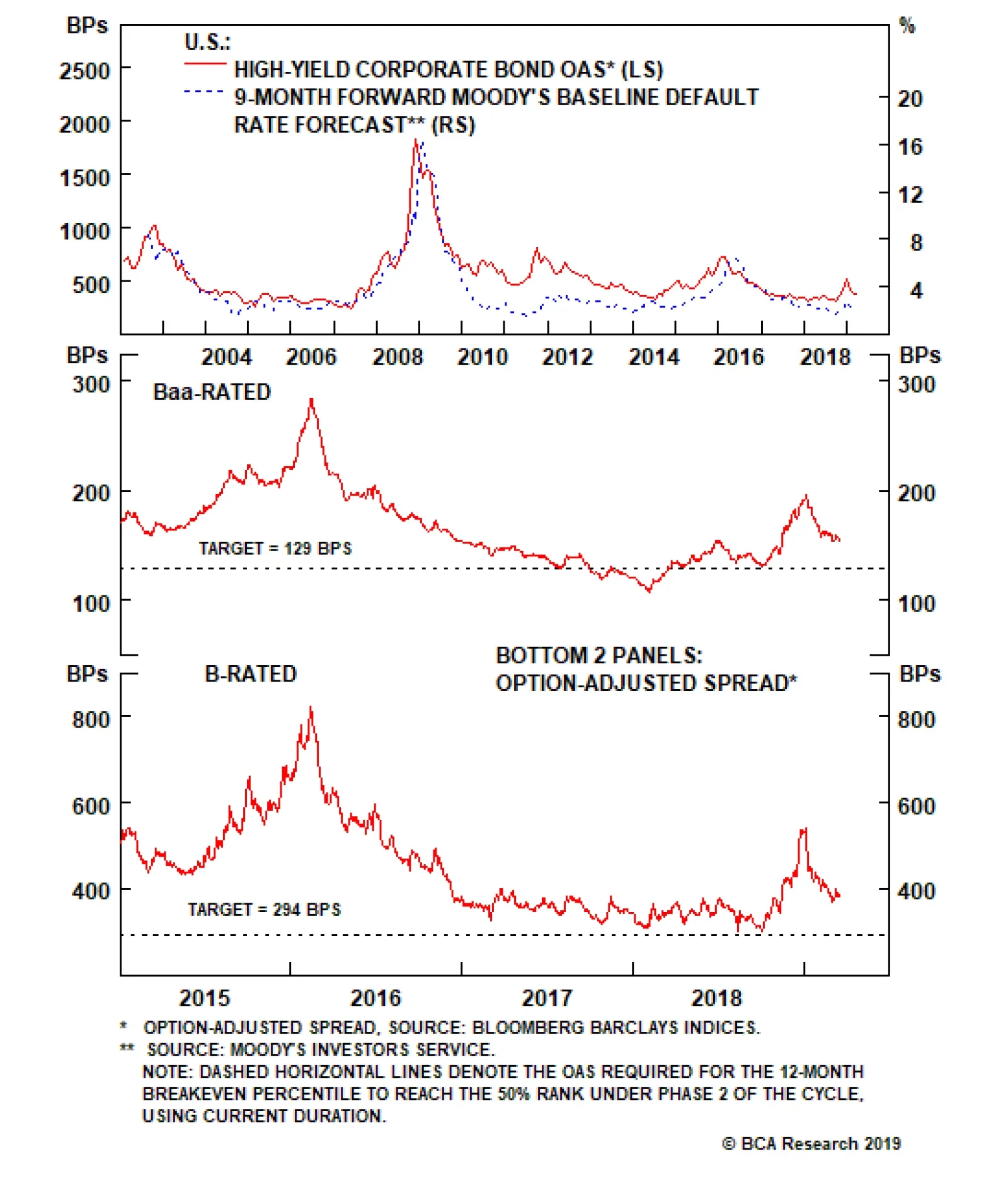 While the current environment remains positive, it increasingly looks like the second half of 2019 will be more challenging for corporate credit. Stay tuned. Ryan Swift, U.S. Bond Strategist rswift@bcaresearch.com Footnotes 1 For further details on the amount of labor market slack in the economy please see U.S. Bond Strategy Weekly Report, “The Search For Aaa Spread”, dated March 12, 2019, available at usbs.bcaresearch.com 2 We forecast the recovery rate based on its inverse historical relationship with the default rate. A higher default rate implies a lower recovery rate, and vice-versa. 3 Please see U.S. Bond Strategy Weekly Report, “The Search For Aaa Spread”, dated March 12, 2019, available at usbs.bcaresearch.com 4 For more details on our spread targets please see U.S. Bond Strategy Weekly Report, “Paid To Wait”, dated February 26, 2019, available at usbs.bcaresearch.com