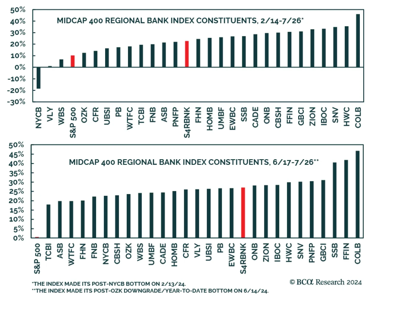 Equity investors have been skittish about mid-cap banks ever since Silicon Valley Bank failed in March 2023. The S&P MidCap 400 Regional Banks Index remains 4% below its February 2023 high while the S&P 500 Diversified…