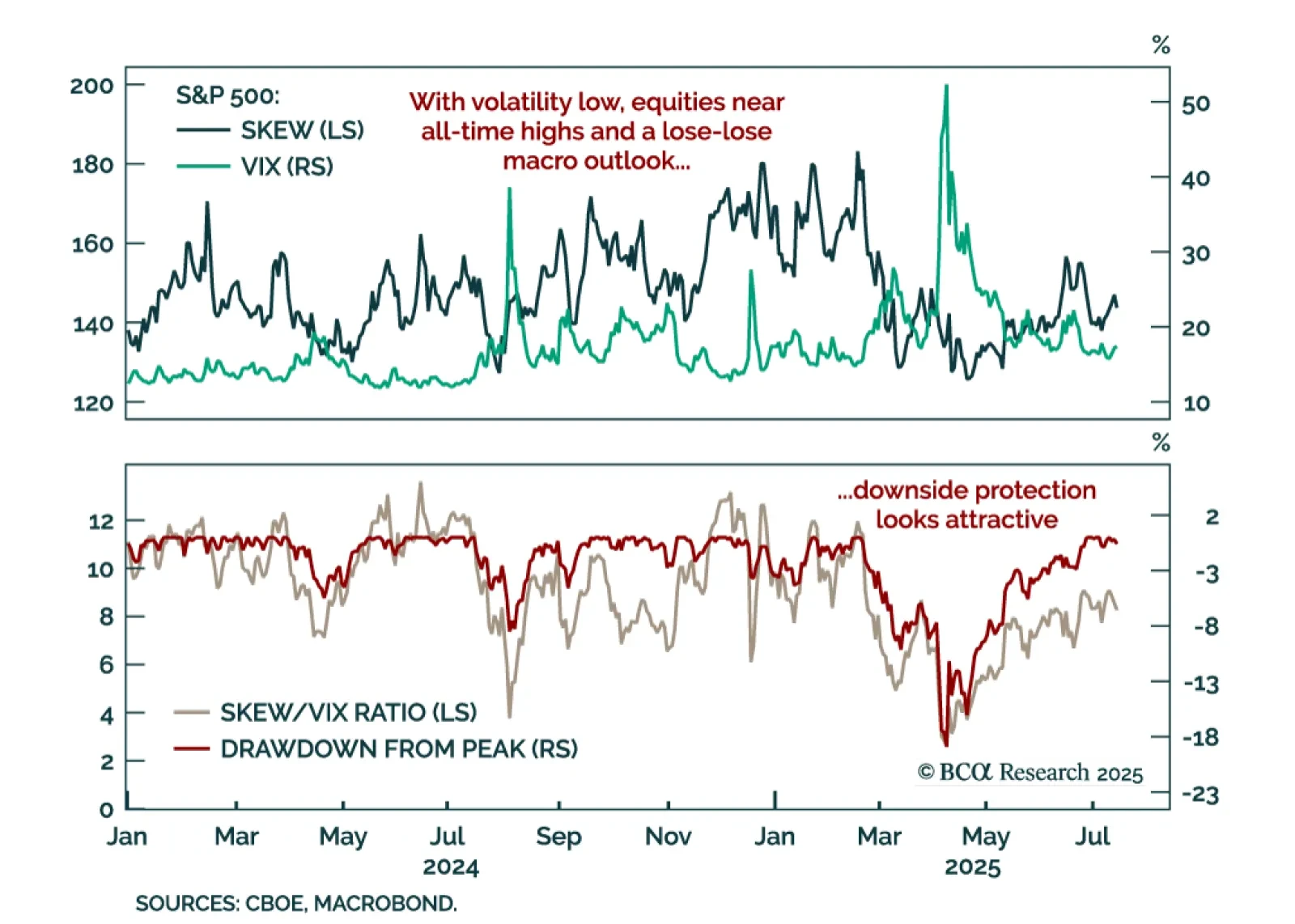 MacroQuant is tactically overweight equities, favors an above-benchmark duration stance in fixed-income portfolios, remains bearish on the US dollar, and is bullish on gold and copper.