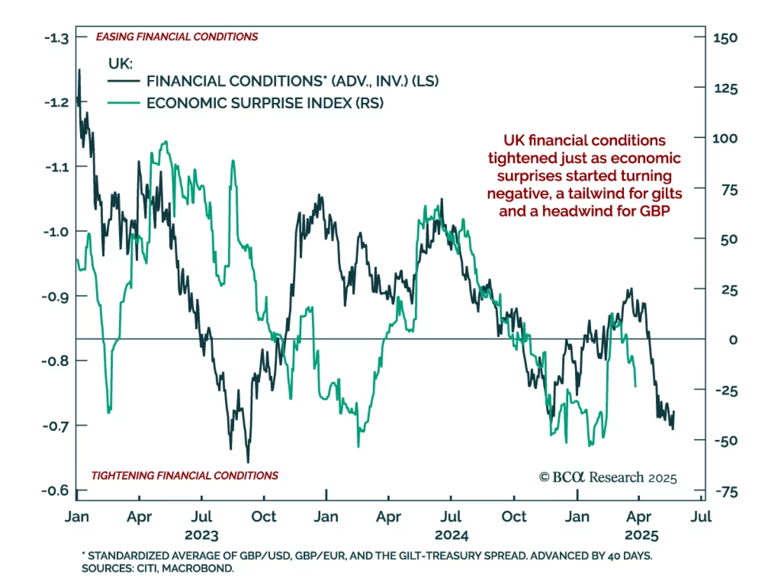 UK financial conditions have tightened just as economic surprises have turned negative, an uncomfortable combination that reinforces our tactical positioning. We remain overweight UK gilts within a global bond portfolio and are…
