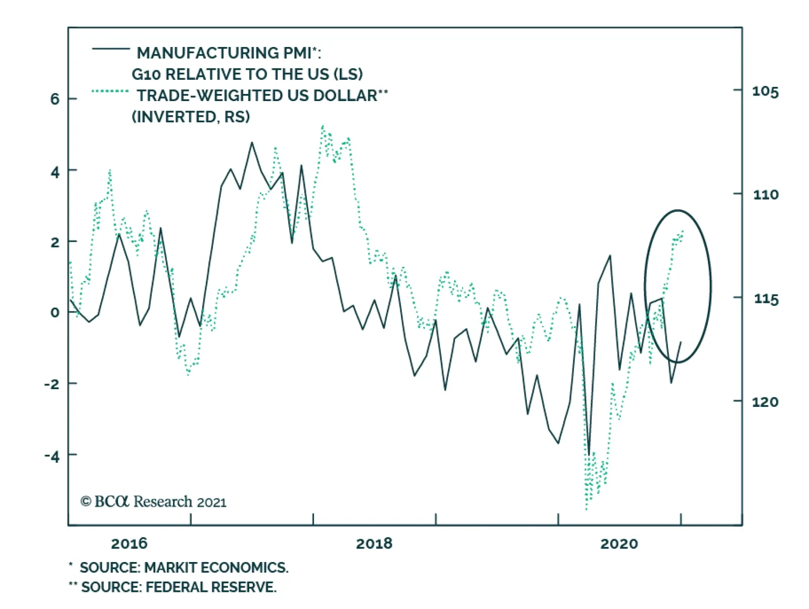 BCA Research’s Foreign Exchange Strategy service concludes that over the next one to three months, a garden-variety 5-10% correction in the S&P 500 will coincide with a 2-4% bounce in the DXY. An equity market…
