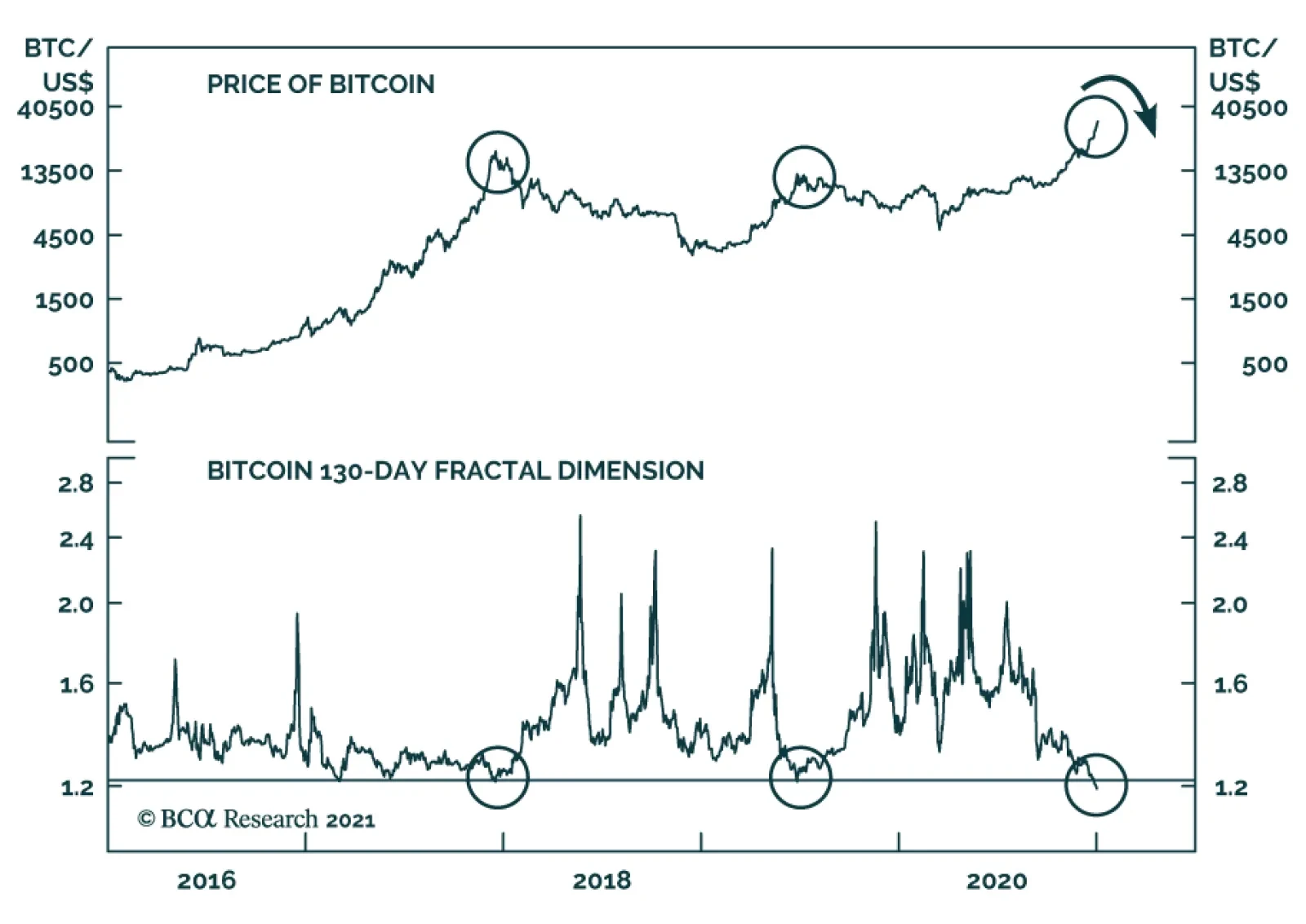 Bitcoin prices have experienced a spectacular rise since December, hitting an all-time high above $34,500 on Sunday before declining to hover around $31,000. However, Bitcoin’s “fractal dimension” is flashing a…