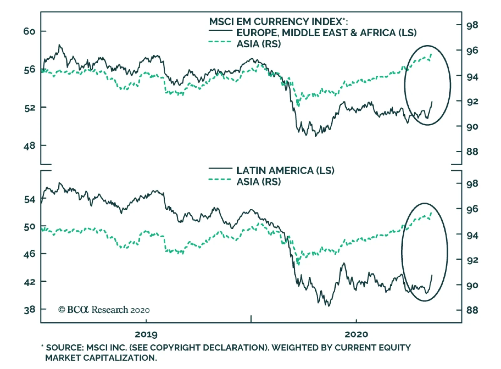 Since late-March, the MSCI Emerging Markets Currency Index has rallied nearly 10%, and has recently risen above its pre-pandemic peak. This has caught the attention of some investors, who often interpret aggregate EM currency…