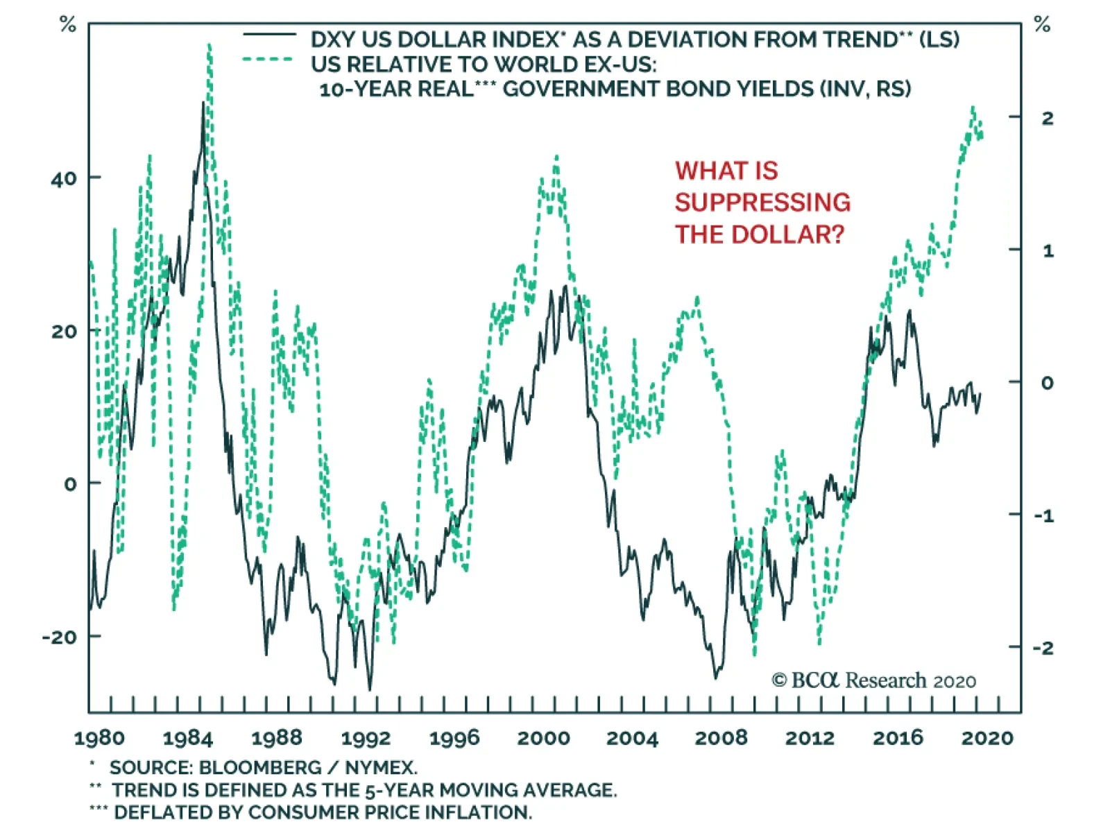Once it became evident that global growth would suffer a shock from the Covid-19 outbreak, investors seeking safe-havens bid up the dollar. Oddly, the greenback is actually lagging behind real interest rate differentials. This…