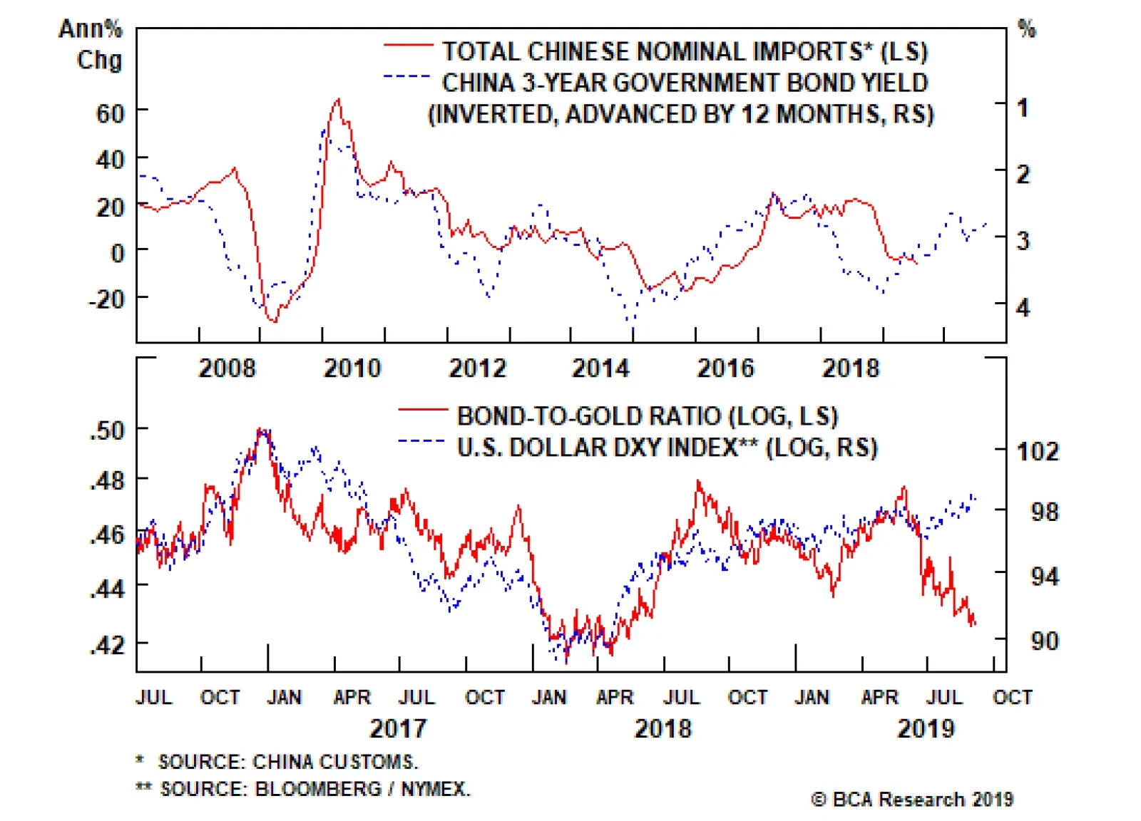 Highlights The lingering global manufacturing recession and the substantial drop in U.S. bond yields have been behind the decoupling between both EM stocks and the S&P 500, and cyclical and defensive equities. Neither the most…