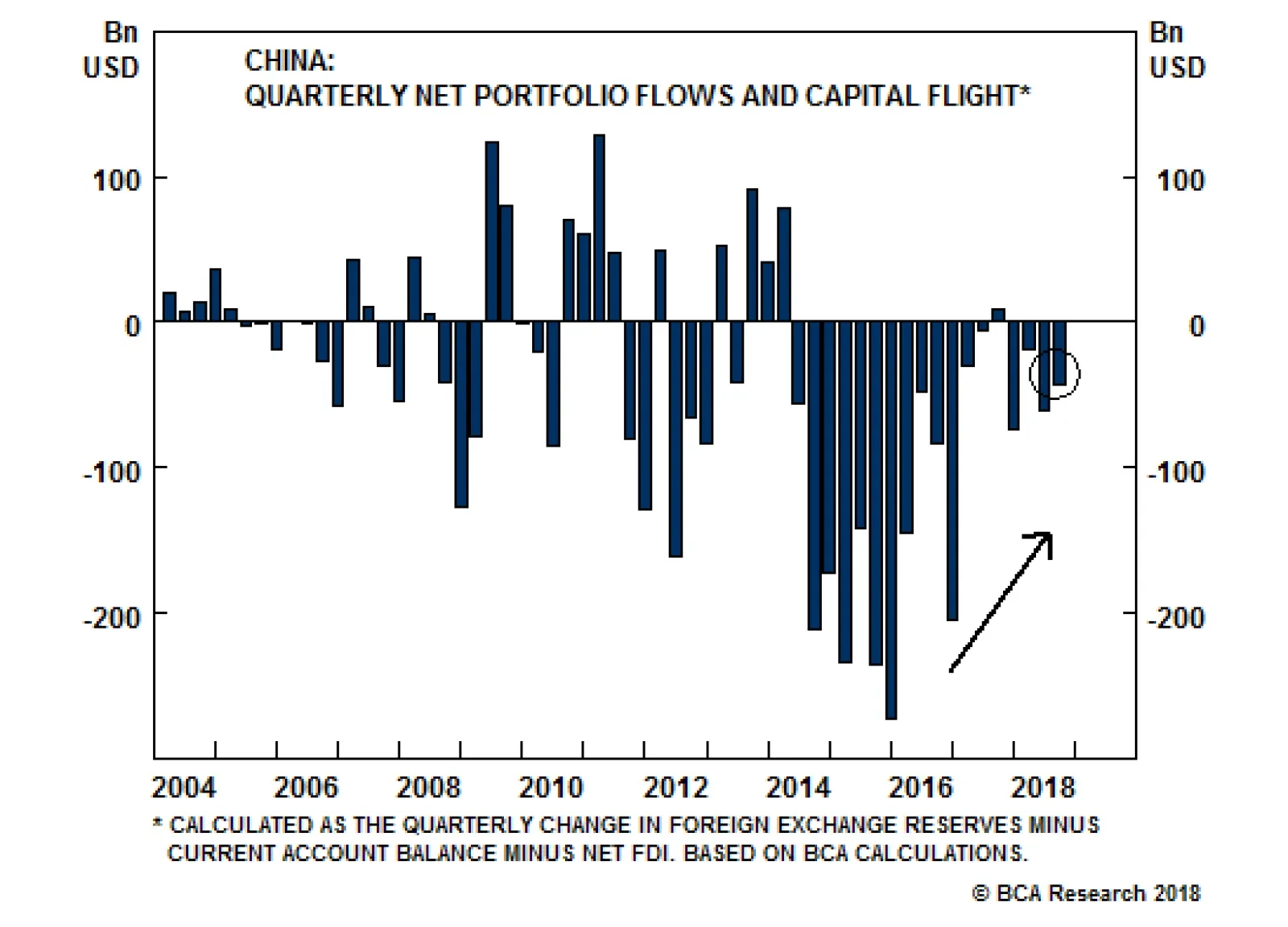 In 2015, a 4.7 percent depreciation precipitated a US$483 billion outflow of Chinese FX reserves. Conversely, the RMB has declined by about 10% in 2018 without any meaningful capital outflows or FX reserve deployment (see chart…