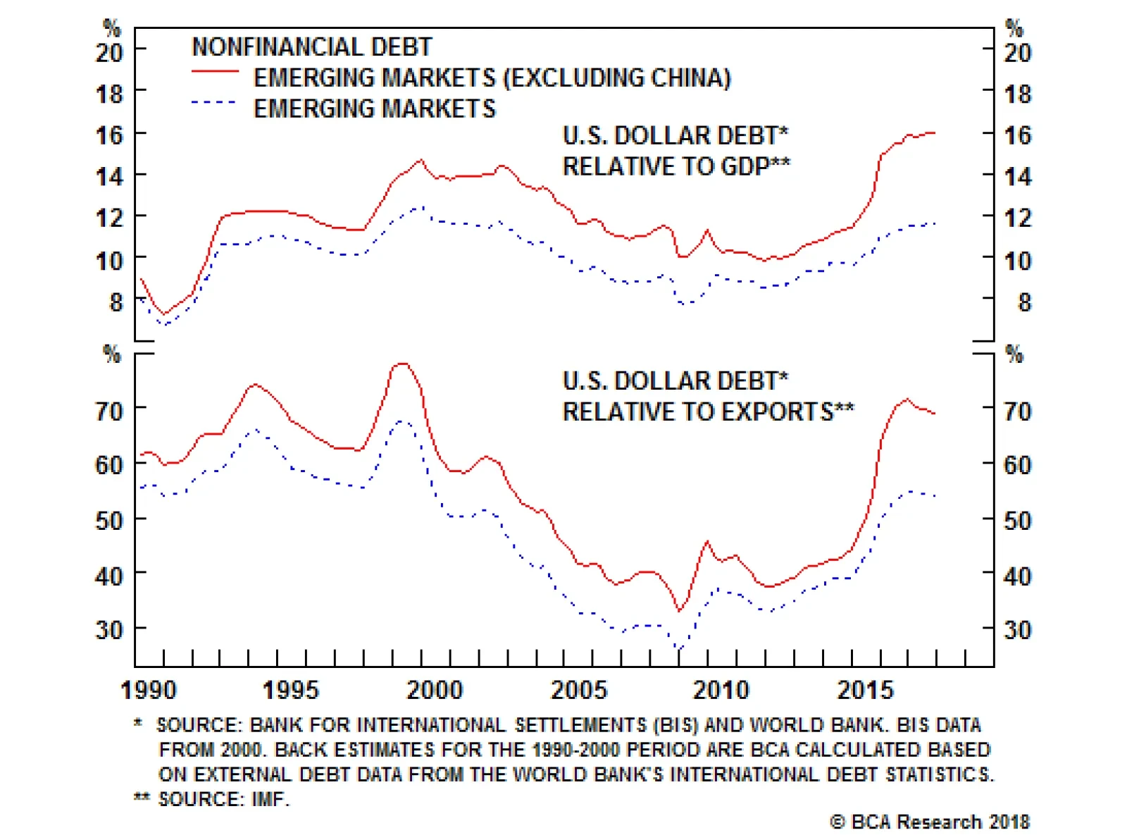 Eighty percent of EM foreign-currency debt is denominated in dollars. Outside of China, EM dollar debt is now back to late-1990s levels, as a share of both GDP and exports. The large stock of EM local-currency debt issued in…