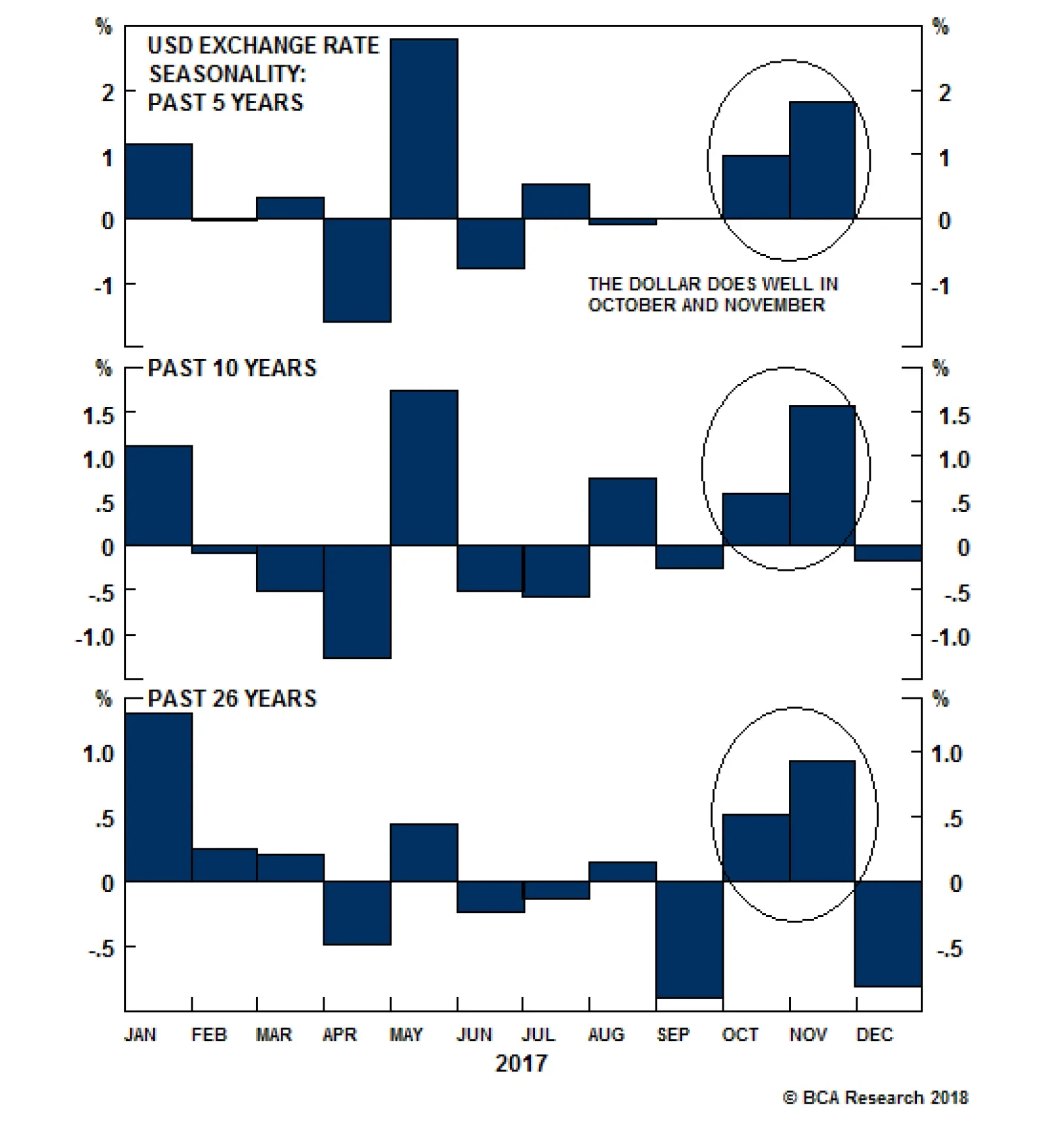 Highlights Historically, the dollar exhibits positive seasonality in October and November. Technical and valuation indicators suggest that this year will be no exception. Continuing divergence between U.S. and global growth, rising…