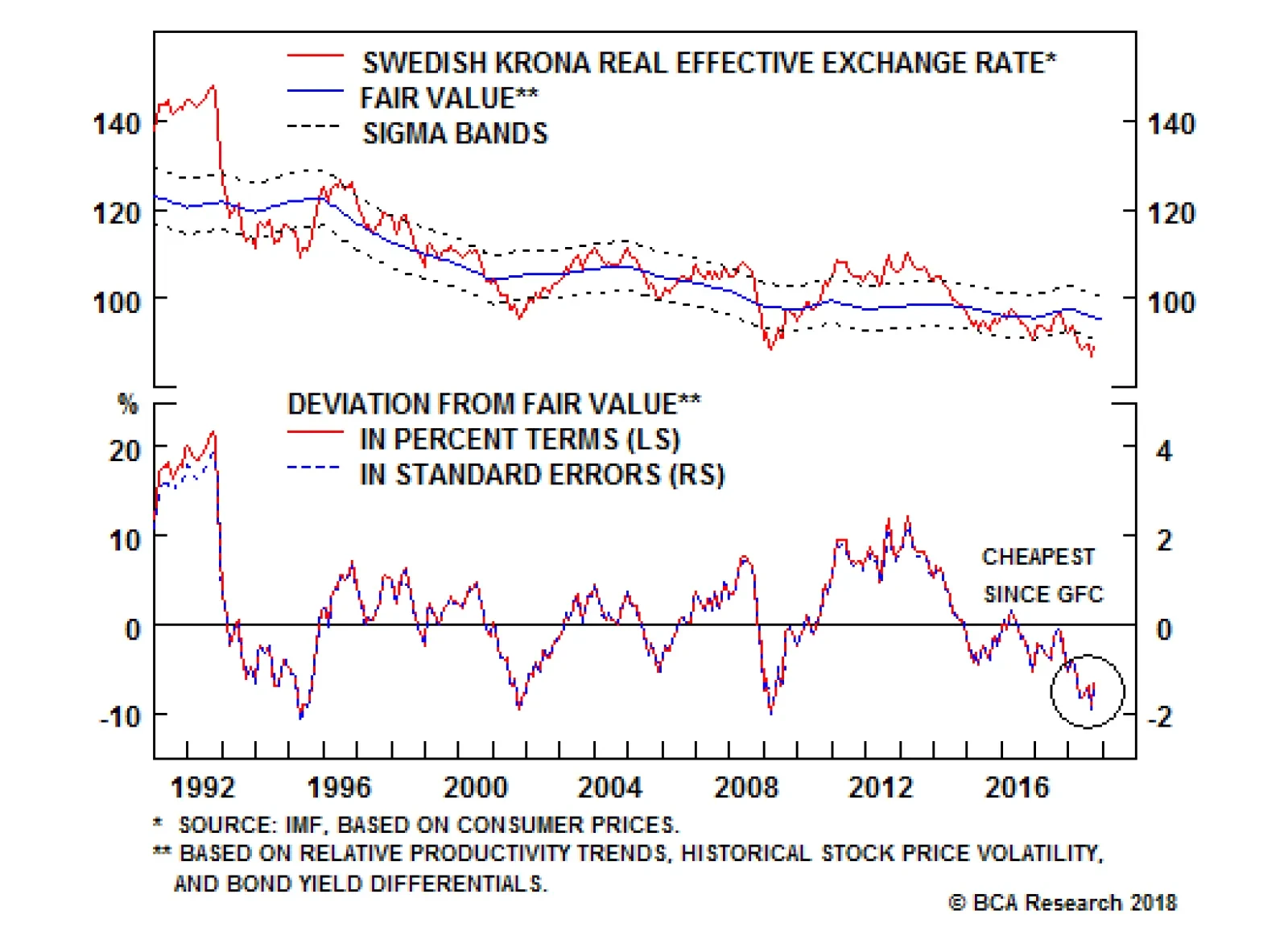 Our Foreign Exchange Strategy group believes the SEK is clearly cheap. The trade-weighted krona is trading at its cheapest levels relative to BCA’s long-term fair value since the Great Financial Crisis (see chart). The SEK…