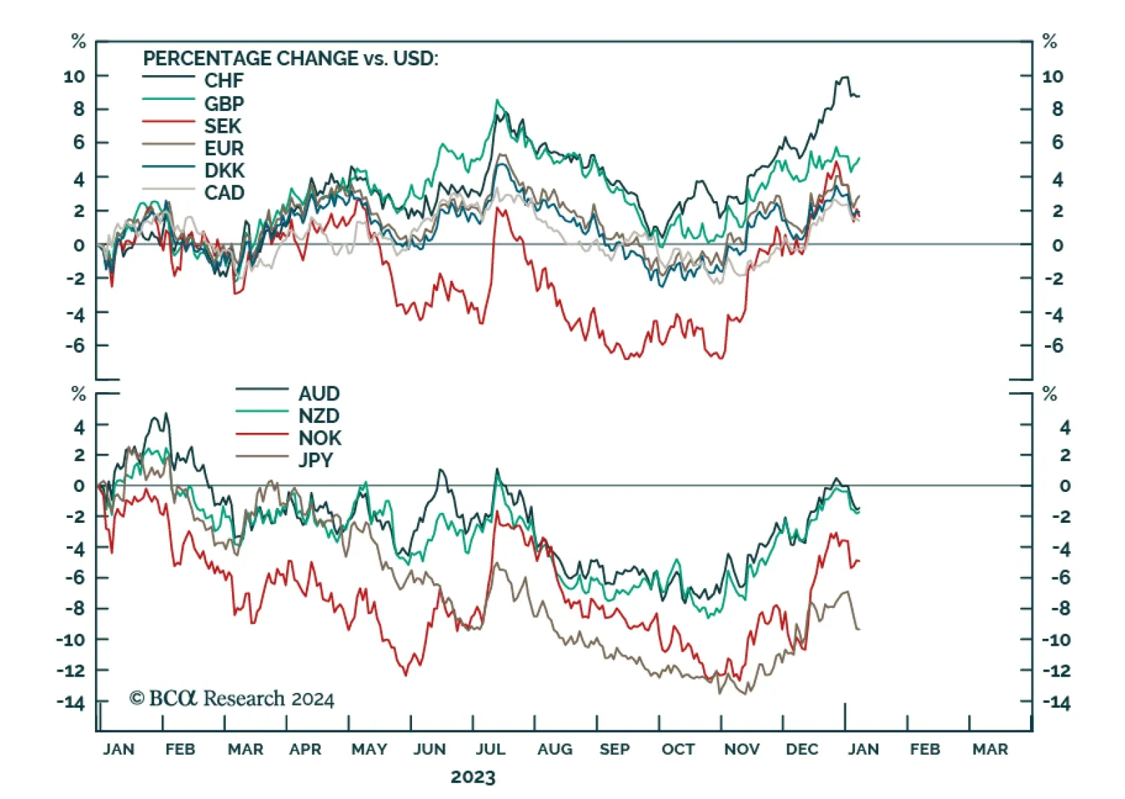 Following a strong rally in the prior two years, the performance of the US dollar was significantly weaker in 2023. The DXY index ended last year down 0.9%, after gaining 3.3% and 6.4% in 2021 and 2022, respectively.…