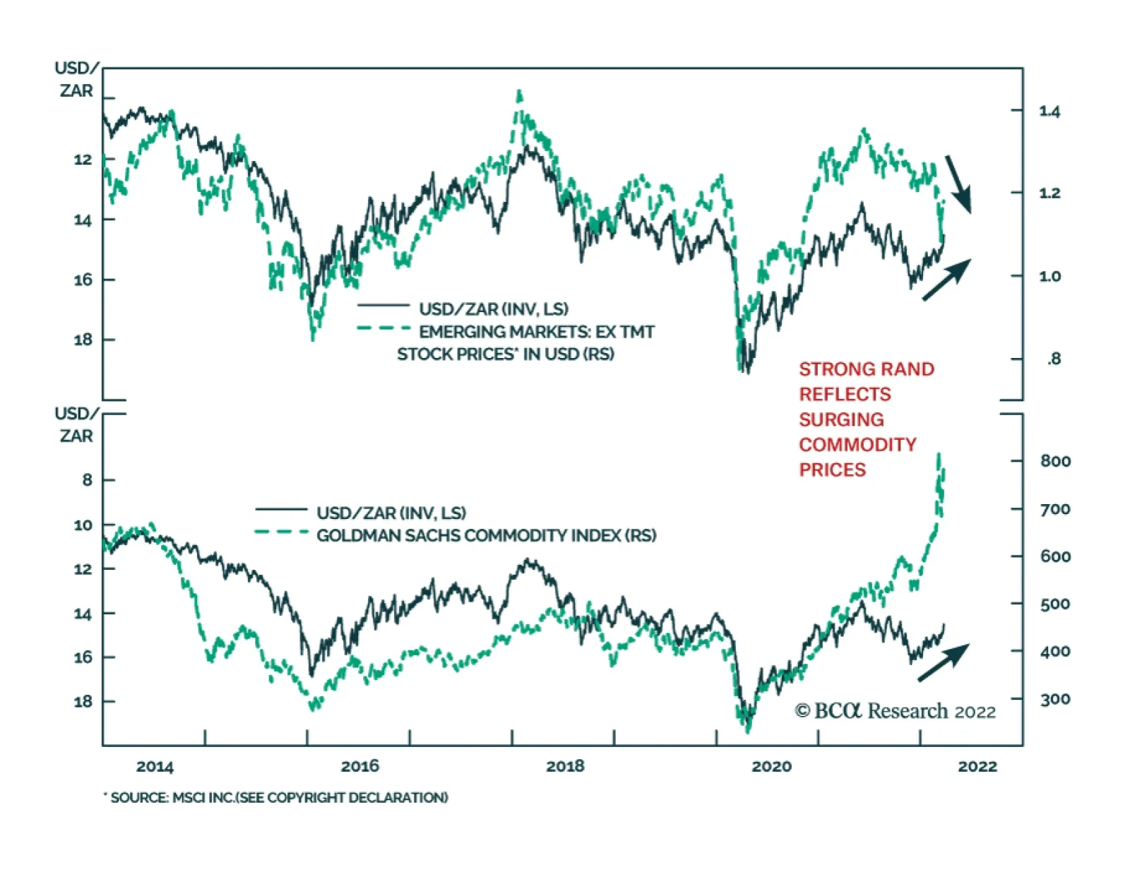 The South African rand has been strengthening over the past four months and is up 11% vis-à-vis the US dollar so far this year. Historically, the rand tends to move in lockstep with Emerging Market ex-TMT stocks and acts…