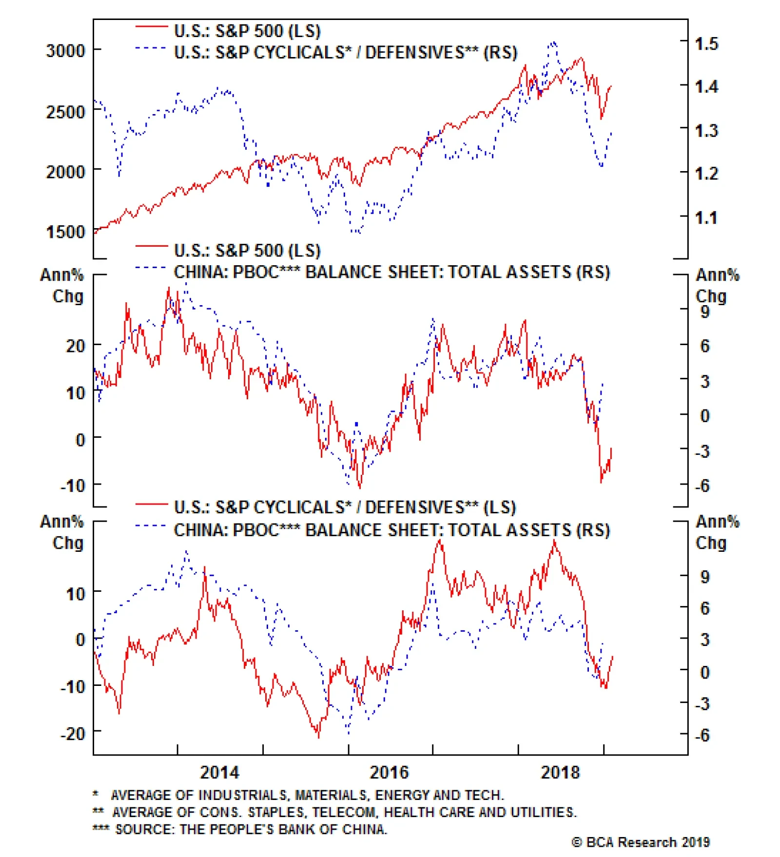 A positive resolution to the U.S./China trade spat is the third catalyst we highlighted recently in order for equities to break out to fresh all-time highs.4 Related to this, China’s reflation efforts are equally important. On that front, news of quasi QE from the PBOC suggests that the Chinese authorities remain committed to injecting liquidity into their economy.5 Already, the PBOC balance sheet, with over $5.5tn in assets, is expanding anew. Empirical evidence suggests that SPX momentum and the ebb and flow of the PBOC balance sheet are joined at the hip, and the current message is positive (second panel, Chart 3). Chart 3Heed The PBoC Message