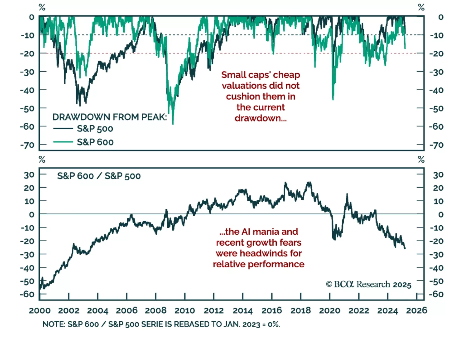 A reoccurring theme in client discussions has been how cheap US small-cap equities could siphon allocation away from their richly-valued large-cap peers. But valuations are no one’s friend in a drawdown. While the S&P 500 is in…