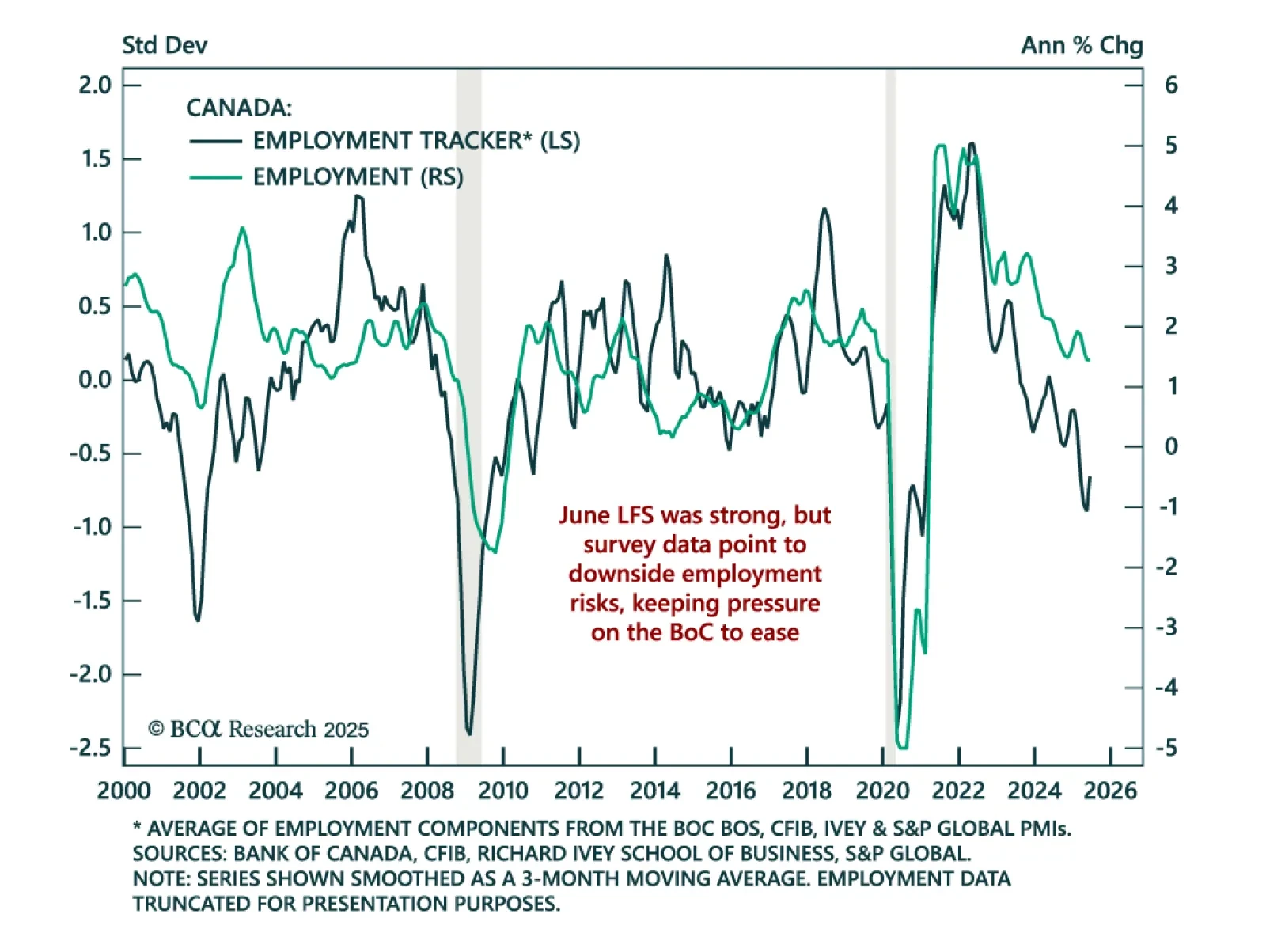 June’s strong Canadian jobs data does not argue against further easing and a CGBs overweight. Employment rose by 83.1k versus expectations for no growth, the first increase since January. The unemployment rate fell to 6.9% from 7.0…