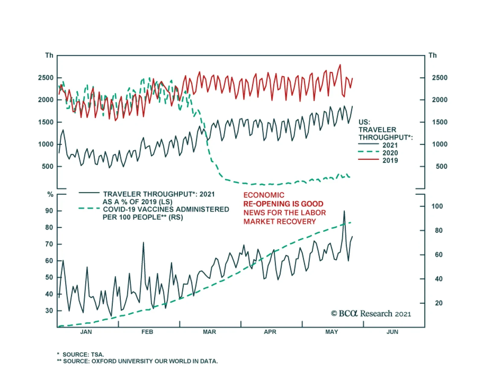 Data from the US Transportation Security Administration (TSA) suggests that US economic activity is normalizing rapidly. The number of travelers screened at TSA checkpoints in US airports continues to make fresh pandemic highs…