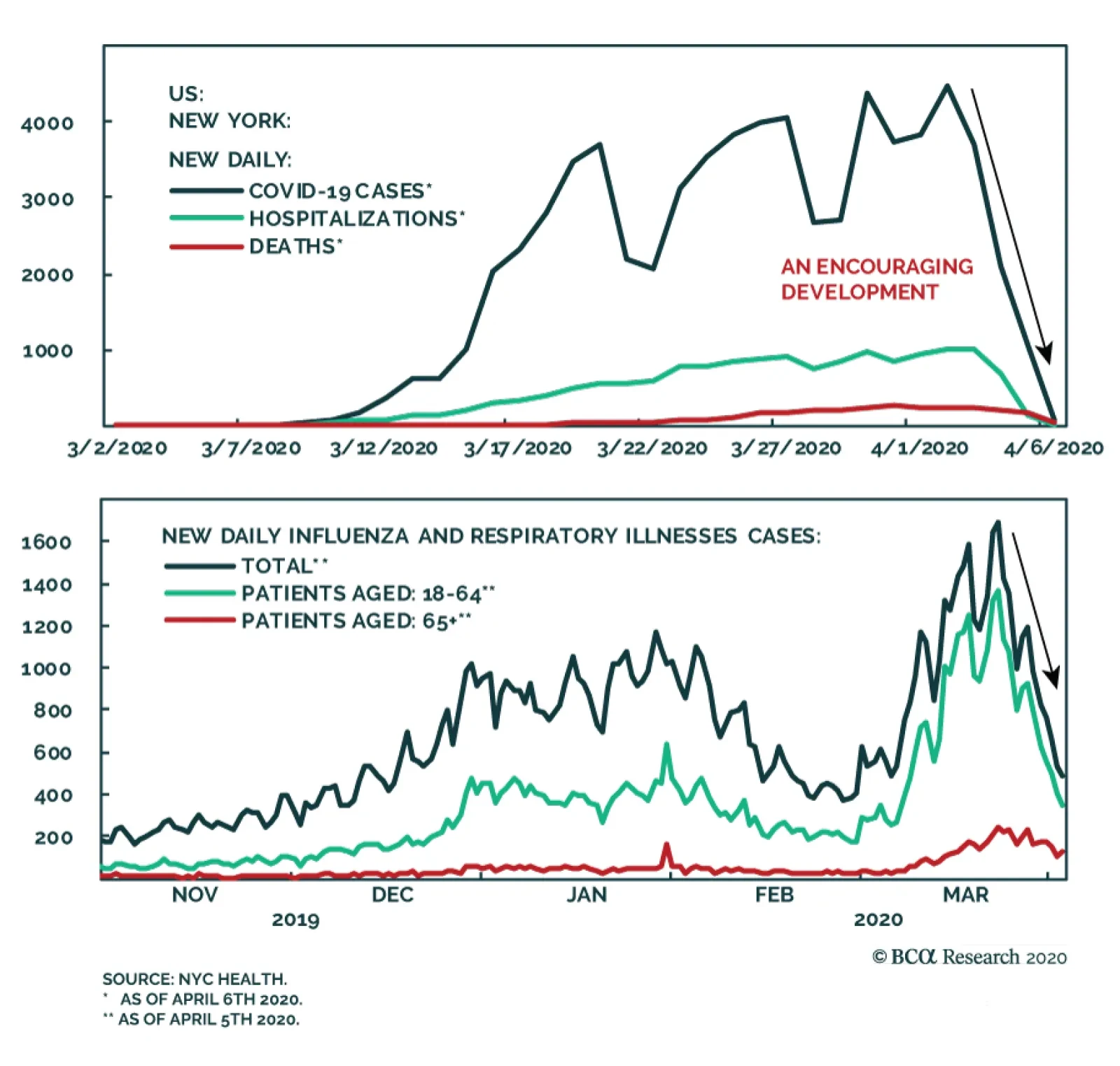 Our former colleague, Marko Papic of the Clocktower Group, highlighted to us the decline in new COVID-19 cases in New York City. The chart above shows that not only are new cases falling precipitously in the Big Apple but so…