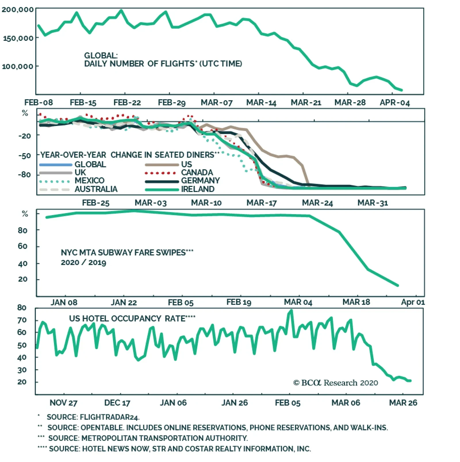For now, the most up-to-date indicators of economic activity show that the global economy continues to decelerate, especially in the service sector. For example, the number of flights around the world has fallen by more than 70%…