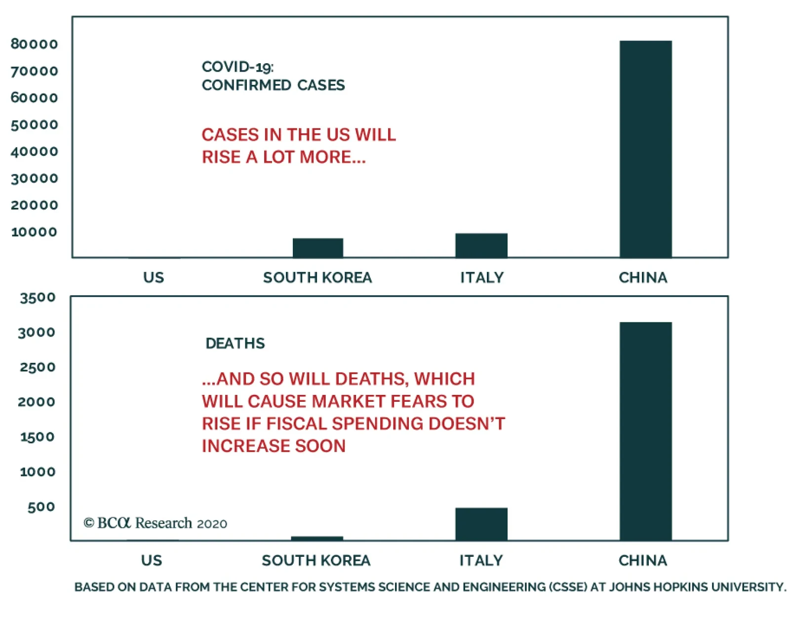 The market already anticipates the Fed to cut the fed funds rate below 0.25% by April, thus the Fed can do little to jolt markets higher. A large-scale fiscal spending package is the only policy measure that could put a permanent…