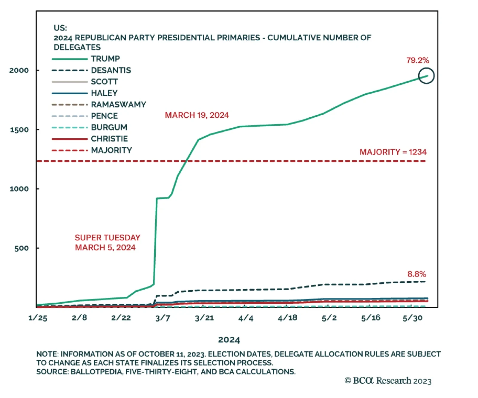 According to BCA Research’s US Political Strategy service, Trump is lined up to win the Republican presidential nomination by March 19, 2024. The takeaway is greater risk of party change, higher US and global policy…