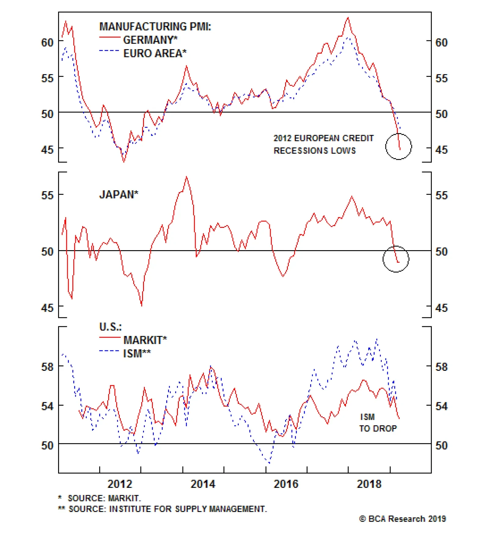 Highlights U.S. growth remains robust, despite some temporary softness in recent months. Ex U.S., growth continues to fall but, with China probably now ramping up monetary stimulus, should bottom in the second half. Central banks everywhere have turned more dovish, partly in an attempt to push up inflation expectations. The combination of resilient growth and easier monetary policy should be good for global equities. We remain overweight equities versus bonds. Bond yields have fallen sharply everywhere. However, with U.S. inflation still trending up, and central banks unlikely to turn any more dovish this year, yields are unlikely to fall much further in 2019. We recommend a slight underweight on duration. We remain overweight U.S. equities, but are on watch to upgrade the euro zone and Emerging Markets when we have stronger conviction about China’s stimulus. Given structural headwinds in both Europe and EM, this would probably be only a tactical upgrade. We have been tilting our equity sector recommendations in a more cyclical direction, last month raising Industrials and Energy to overweight. We also prefer credit over government bonds within the fixed-income category, though we warn that spreads will not fall much further given weak corporate fundamentals. Feature Recommended Allocation