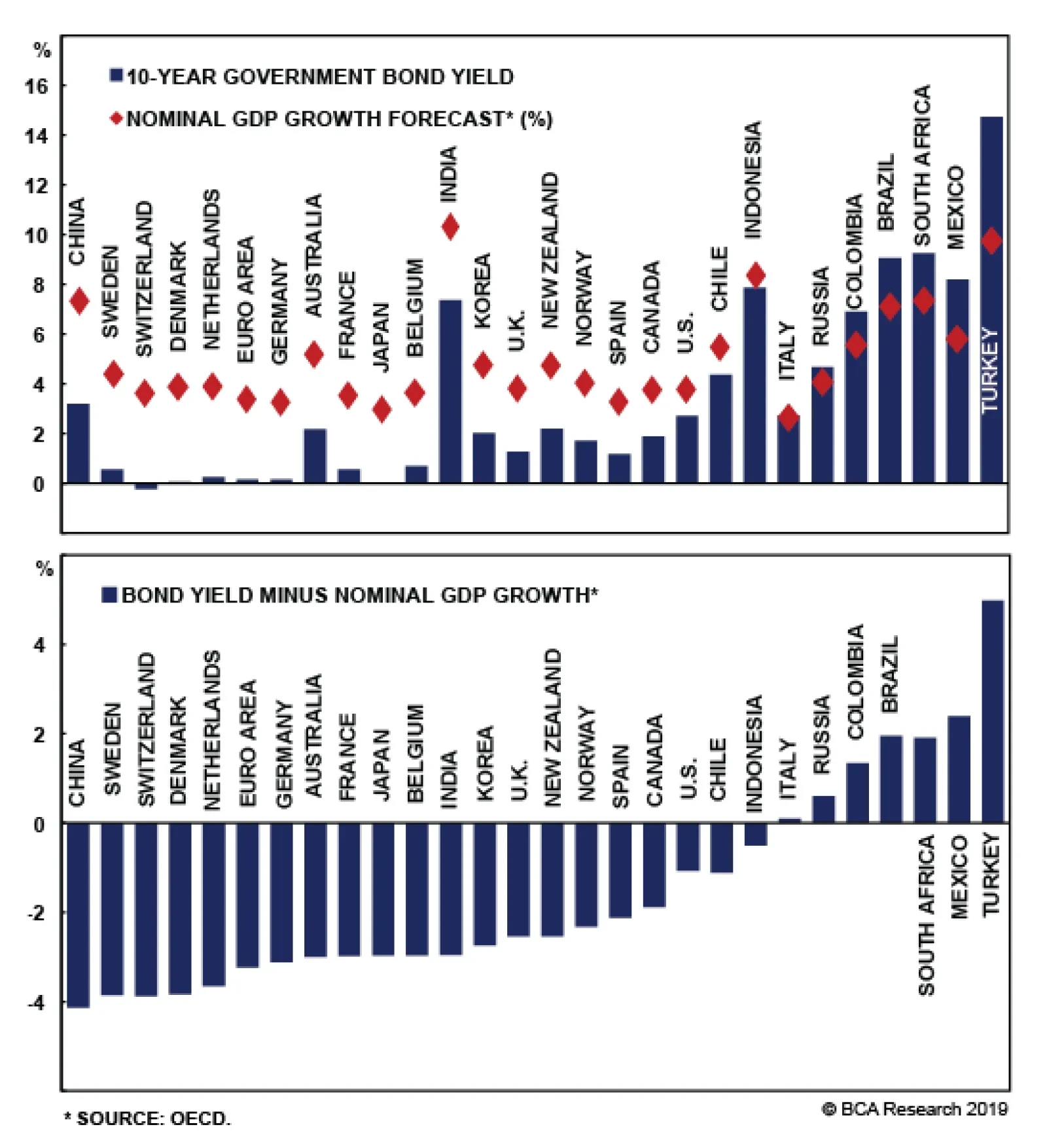 Q: Isn’t it crazy to assume that interest rates will always stay below GDP growth? A: Not according to MMTers. They argue that the government can borrow at any rate it wants. This is because they see the currency as a public monopoly. As long as a government is able to issue its own currency, it can create money to pay for whatever it purchases, and by definition, money pays no interest. This means that the interest rate can always be held below the growth rate of the economy. The only reason policymakers may wish to raise interest rates is if inflation is getting out of hand. However, even then, most MMT adherents would prefer that the government tighten fiscal policy either by hiking taxes on the rich or cutting spending programs they don’t like (the military is usually high on their list). Raising rates is widely seen by MMT supporters as simply providing a handout to bondholders. Q: It sounds like MMT basically cuts the Fed and other central banks out of the loop. A: That’s right. MMTers contend that monetary policy has little impact on the economy. In fact, many MMT advocates believe that higher rates raise aggregate demand by putting more income into bondholders’ pockets. It’s a very odd argument. Yes, corporate investment tends to respond more to animal spirits than to changes in interest rates. However, there is little doubt that rates affect housing, the currency, and asset prices (and all three, in turn, affect animal spirits). It is almost as if the 1982 recession – an episode where the Volcker Fed took interest rates to 19% – never happened. Q: An odd argument, but perhaps not a surprising one? A: That’s where the “Magic Money Tree” moniker comes in. When an economy is suffering from high unemployment, there really is a free lunch: Putting more people to work can increase someone’s spending without decreasing someone else’s. However, when an economy is at full employment, scarcity becomes relevant again. If a government wants to spend more, it has to convince the private sector to spend less, which it normally does by raising interest rates. MMTers like to throw out the old chestnut about how budget deficits endow the private sector with financial assets such as cash or government bonds. But if additional government spending leads to higher inflation, an increase in the volume of financial assets will simply result in the erosion of the value of existing financial assets. There may be times when more government spending is beneficial even in a full-employment economy, such as funding for basic scientific research or public infrastructure. However, there may also be times when increased government spending is wasteful and comes at the expense of valuable private-sector investment. MMT does not distinguish between the two cases because its adherents seem to deny that any such trade-off exists. Q: It sounds like MMTers want to have their cake and eat it too. A: Exactly. The political appeal of MMT is that it seemingly promises European-style welfare spending without Europe’s level of taxes. Just print more money! Let us ignore the fact that the Fed actually pays interest on bank reserves. Under the current rules, increasing the monetary base would not be costless for the government if that money ended up back at the Fed in the form of excess reserves, as it surely would. The bigger problem is that a large increase in government spending, which is not matched by much higher taxes, will quickly cause the economy to overheat. At that point, policymakers would either need to rapidly tighten fiscal policy, aggressively hike interest rates, or face hyperinflation and a plunging currency. Q: That seems like an obvious point. Why don’t MMTers see it? A: It gets back to what we discussed at the outset – MMTers regard the world as being chronically stuck in a liquidity trap. The prevailing view among MMTers is that there is still a lot of spare capacity globally, including in the United States, where the unemployment rate has fallen below official estimates of NAIRU (the Non-Accelerating Inflation Rate of Unemployment). MMT supporters tend to be skeptical of these NAIRU estimates, believing them to be biased upwards. MMTers see the world as being chronically stuck in a liquidity trap. The prevailing view among MMTers is that there is still a lot of spare capacity in the world. To be fair, the methodology used by the OECD and many other statistical agencies to calculate the full employment rate, which effectively just smooths out past values of the actual unemployment rate, has probably understated the degree of labor market slack in a few countries (Chart 4). Chart 4AThe Unemployment Rate Versus NAIRU (I)