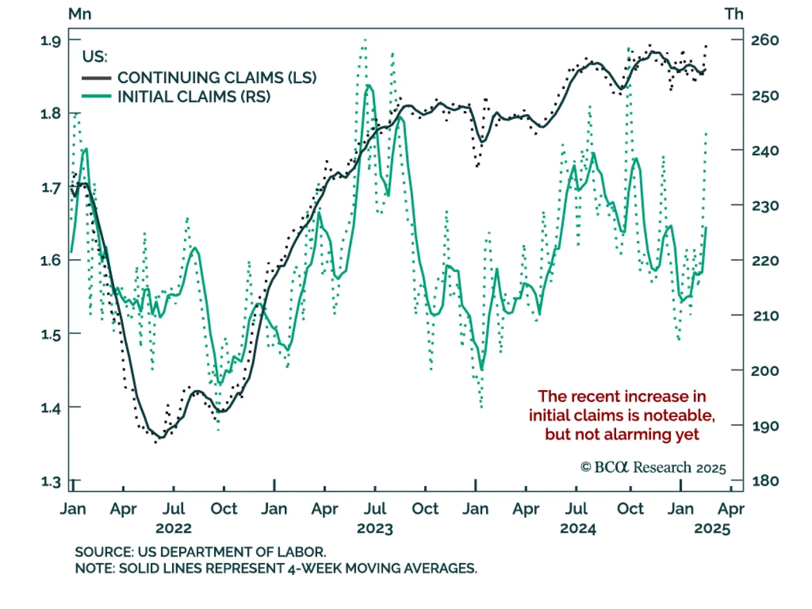Weekly initial claims ticked up to 242k, near 2024 highs. The data is under the spotlight as the Trump administration implements a reduction of the federal workforce through the DOGE. Initial claims are not alarming yet; they…