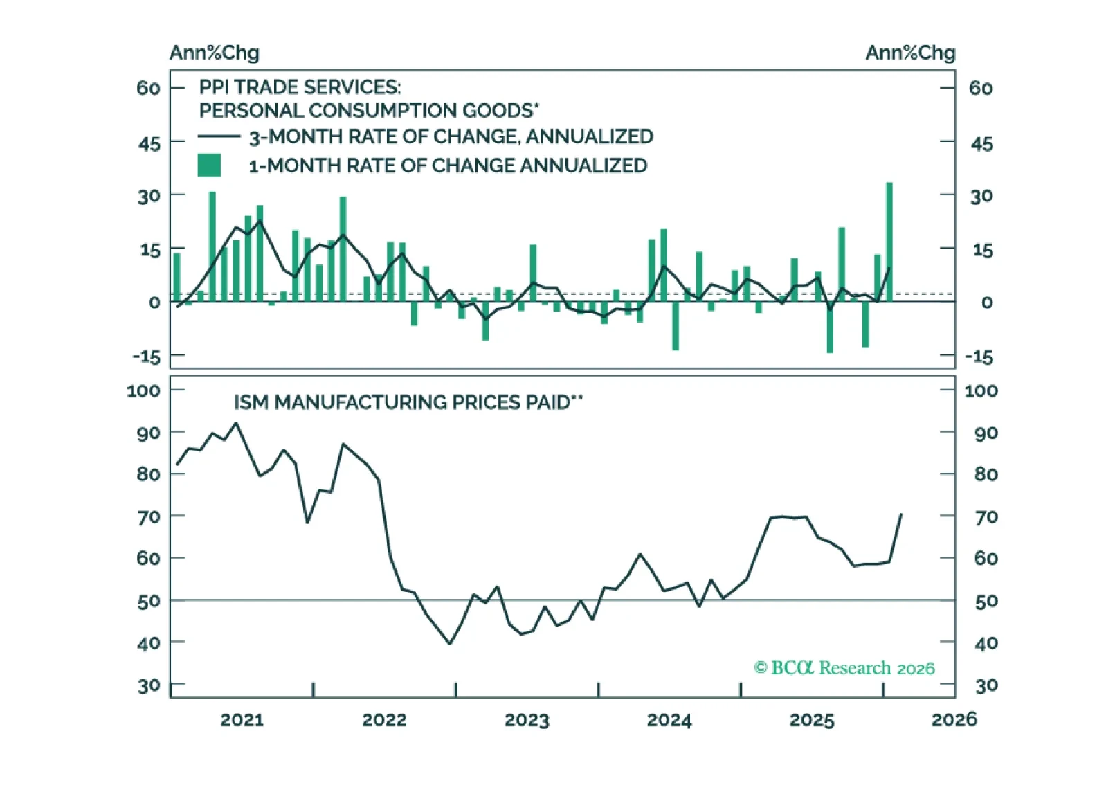 The Fed will not cut rates again until core inflation trends lower. This remains likely as the tariff impact on goods inflation wanes, but the recent energy price shock could delay any meaningful downtrend.