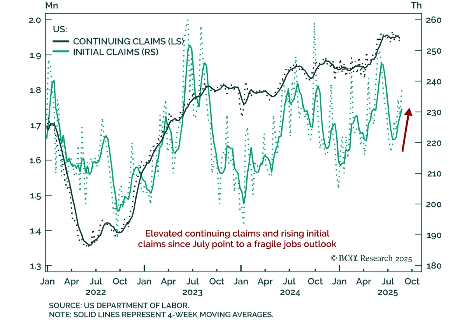US jobless claims rose to 237k, the highest since July, underscoring fragile labor momentum. While still below the recent 250k peak, claims have been rising steadily since early July, suggesting the labor market weakness seen in…