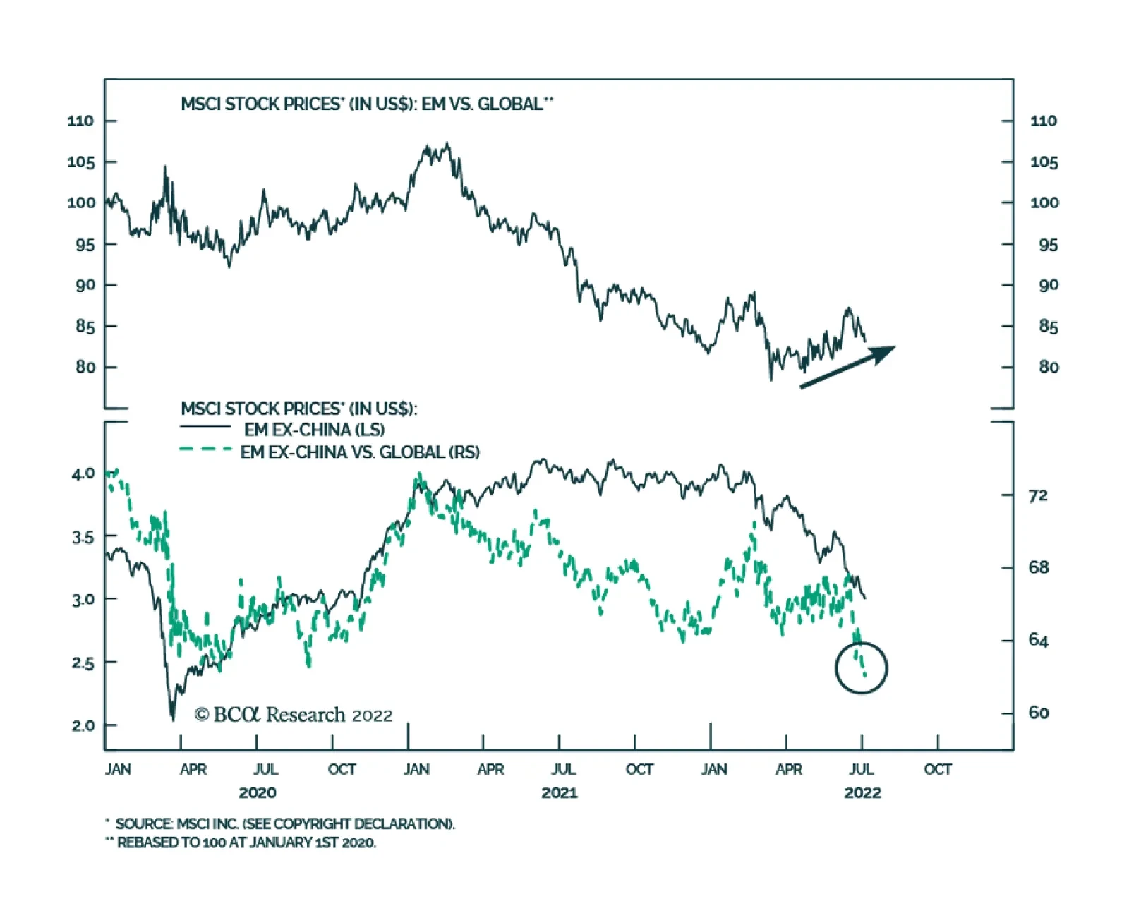 Emerging market equities have been outperforming their global peers over the past few months – marking a reversal in trend from their relative underperformance since February 2021. However, we doubt that this shift in leadership is sustainable. First, the…