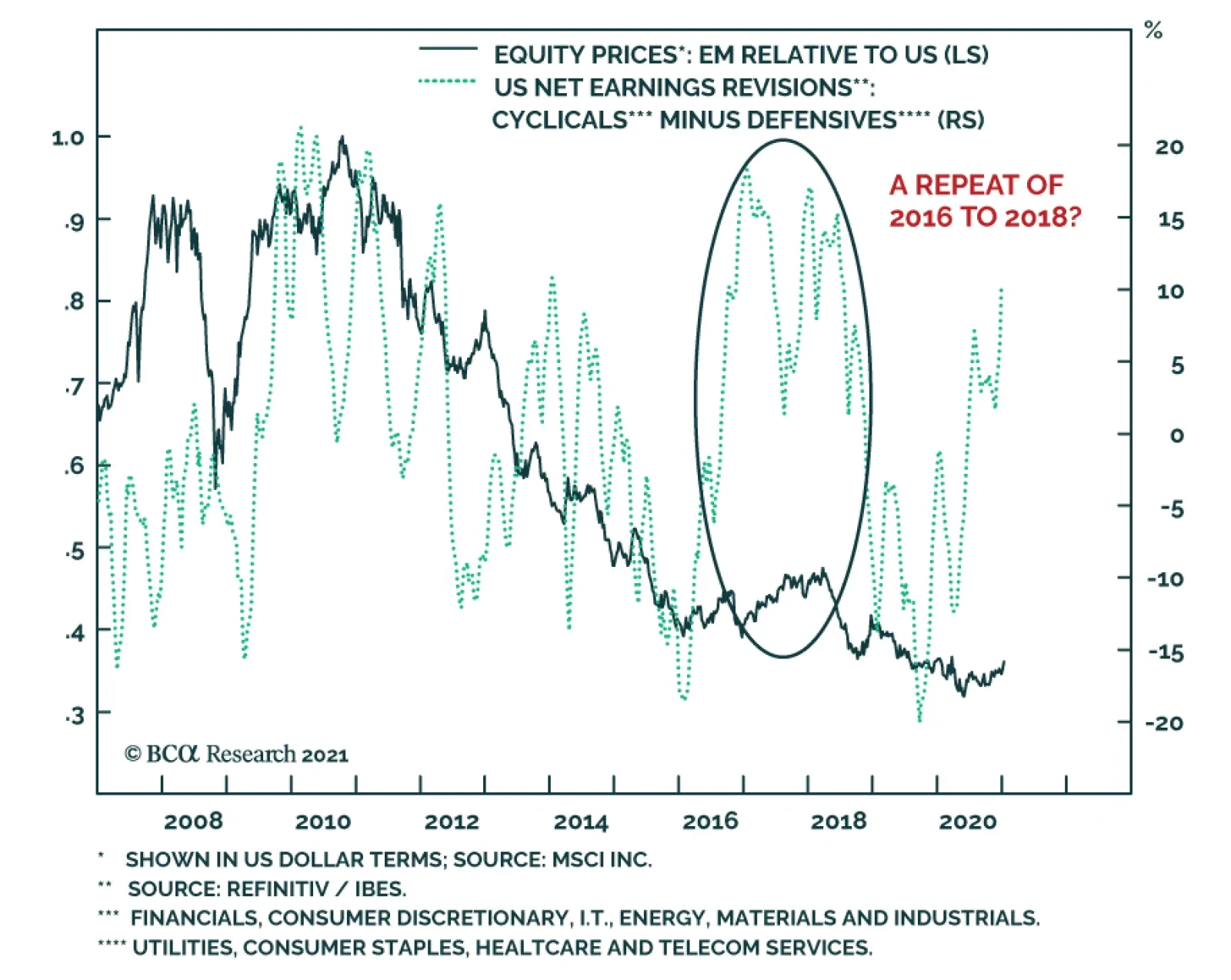 The reality that the market rally will become more volatile (see Indicator Spotlight) does not preclude a meaningful outperformance of EM equities relative to the US. In fact, BCA Research expects EM equities to perform in line with the EAFE benchmark and…