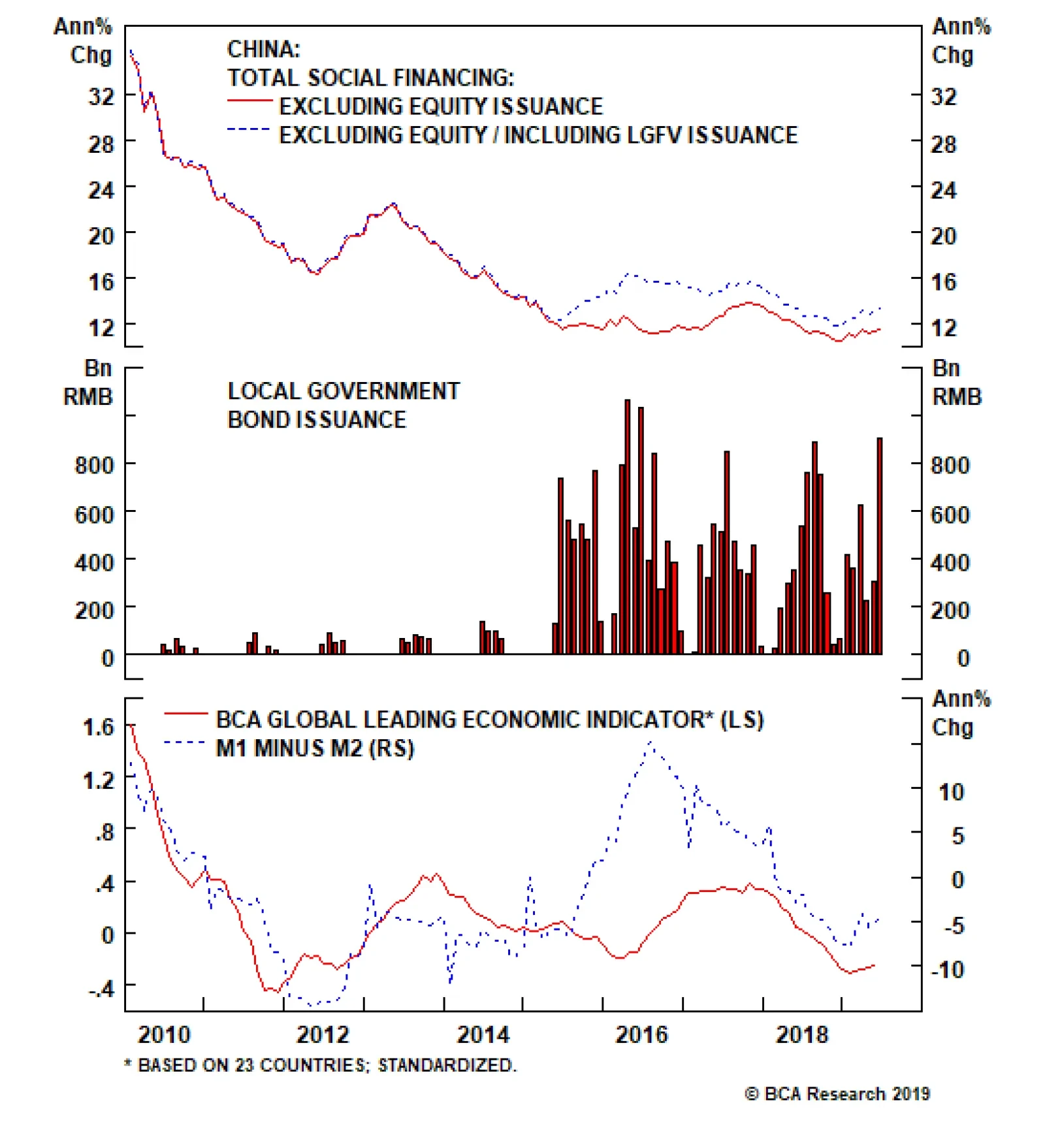 The PBoC has cut the RRR five times since the second quarter of last year, which has freed up a total of 3.35 trillion yuan of liquidity for the banking system5 and has helped spur significant easing in overall monetary conditions. Yet, as we noted earlier, overall credit growth did not pick up until January of this year, lagging the first rate cut by three quarters (Chart 9). Prior to the economic slowdown in 2015-2016, credit growth used to respond to cuts in the RRR almost immediately. In other words, when banking system liquidity was ample, banks historically lent without hesitation. Post-2015, however, this relationship has changed. The PBoC has increasingly been having trouble channeling new liquidity into actual financing for the real economy. A sharp deterioration in reported bank asset quality that began in 2014 is likely part of the explanation,6 but we suspect that more recent extreme policy contradiction – in particular, repeated flip-flopping among authorities between their desire to support growth and their focus on financial stability – has caused economic agents to wait on the sidelines. While monetary conditions eased and the government urged banks to lend (particularly to the private sector) in the second half of 2018, the “prudent” stance coming from Chinese top leaders was little changed, and tight regulations on financial institutions remained in place. This combination did not give banks the confidence to lend. This changed in the first quarter of this year, when new credit creation-to-GDP surged from 23.6% to 25.6%. The surge occurred shortly after the late-December Central Economic Work Conference (CEWC), which sent a clear message that the central government’s policy focus had shifted to “stabilizing aggregate demand.” Incredibly, the tone shifted again in February, when Premier Li Keqiang and the PBoC publicly disputed whether the January credit spike represented “flood irrigation-style” stimulus, something Premier Li made clear was to be avoided.7 Charts 10 and 11 highlight how these shifts impacted credit growth: The first quarter was clearly on track for a 2015-2016-magnitude outcome, whereas April and May saw the path of credit growth return back to a moderate re-leveraging scenario.