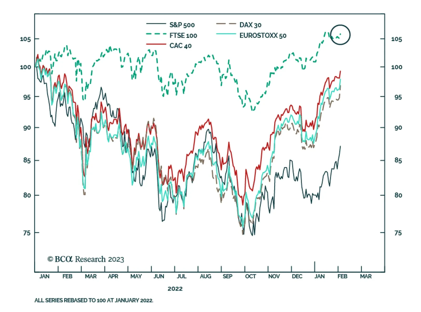 The Fed’s actions at its meeting last Wednesday were no surprise – downshifting to 25 basis points while guiding for more hikes was widely expected – but Chair Powell’s newly conciliatory tone at the press conference helped to spark a two-day equity rally. We remain overweight equities, expecting the S&P 500 to rally into the mid-4,000s at some point in the first half.