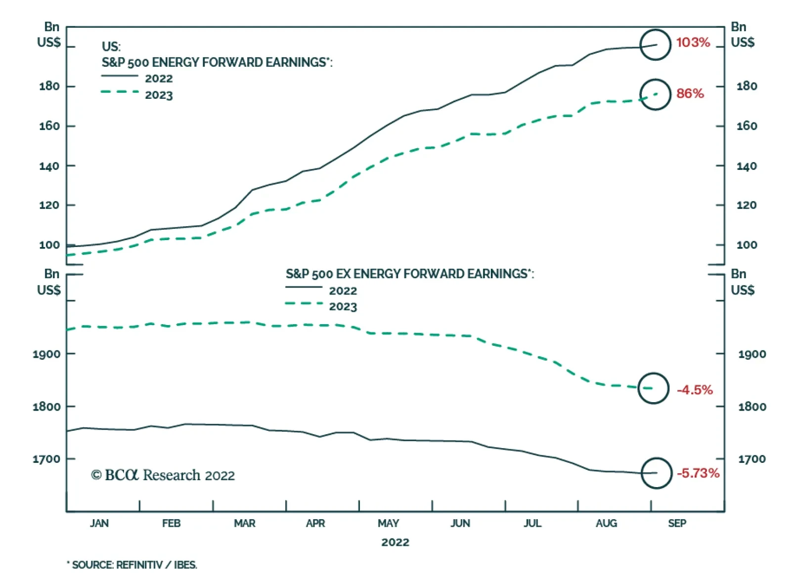 Analysts have been downgrading their S&P 500 earnings expectations for the past three months. Ongoing upwards revisions to estimates for the energy sector – which are currently 103% and 86% above where they stood at the start of the year for 2022 and…