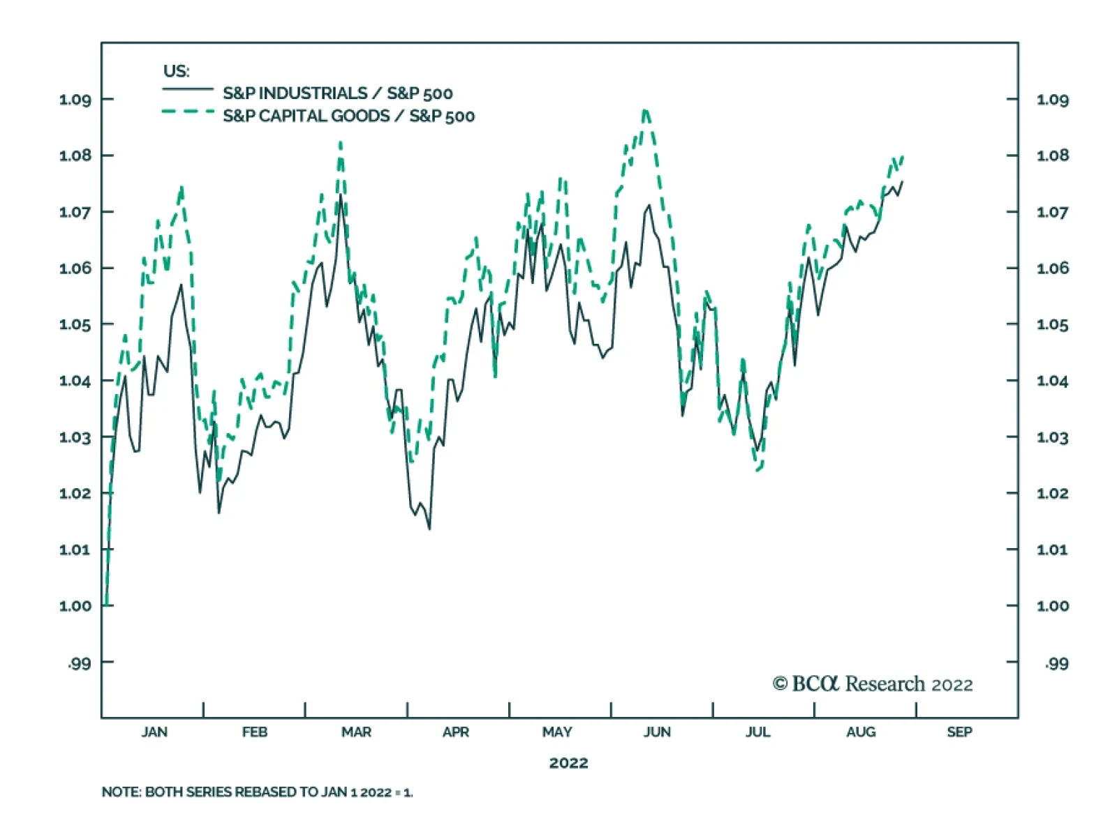 The US is entering a period of an industrial boom thanks to limited manufacturing capacity paired with strong demand for industrial and consumer goods. In addition, a trifecta of positive developments is further boosting US manufacturing: Onshoring, automation, and fiscal stimulus. Onshoring has accelerated after the onset of the pandemic and reshoring announcements are growing steadily. Automation and robotization allow industrial companies to circumvent labor shortages and rising wages and, hence, boost their profit margins. The domestic political landscape in the US is also favorable for industrial stocks given the three major legislative Acts (Infrastructure Investment & Jobs, Inflation Reduction, and National Defense Authorization) that will secure a healthy demand pipeline. While long-term trends are favorable for the sector, a macroeconomic backdrop of slowing growth is a headwind. However, thanks to a confluence of positive long-term trends, most companies are optimistic. Bottom Line: The US industrial sector is in the middle of a boom fueled by onshoring, automation, and favorable government policy. This trifecta of positives helps the sector to defy the gravity of the slowing economy. We remain overweight Industrials on both tactical and strategical time horizons but will continue to monitor it closely, watching out for potential cracks in operating performance. Feature A little over a year ago EMS, GIS, and USES co-published a report “Industrials as equity sector winner in the coming years”. In that report, we posited that the Industrial sector is poised for outperformance as it enjoys a boom thanks to strong new trends in onshoring and automation. In addition to the tectonic shifts described above, the sector has also found itself at the epicenter of the US legislative activity, which will provide a significant tailwind for its performance. Since we published the report on July 30, 2021, Industrials have performed in line with the S&P 500. However, since the beginning of the year, Industrials and Capital Goods outperformed the index by 7%, showing impressive resilience (Chart 1 and Table 1). Chart 1A Resilient Cyclical Sector