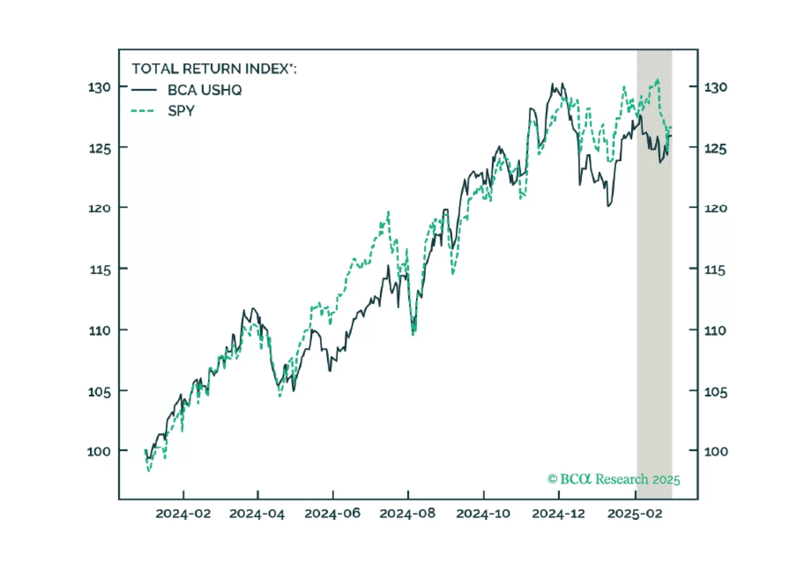 The US High Quality (USHQ) portfolio slightly underperformed in February, returning -0.7%, whilst its SPY benchmark returned -0.6%. While we continue to monitor the portfolio monthly, over a quarter-on-quarter basis, USHQ posted meaningful outperformance vs. benchmark, generating +130bps of excess return, while also exhibiting lower volatility and drawdown.