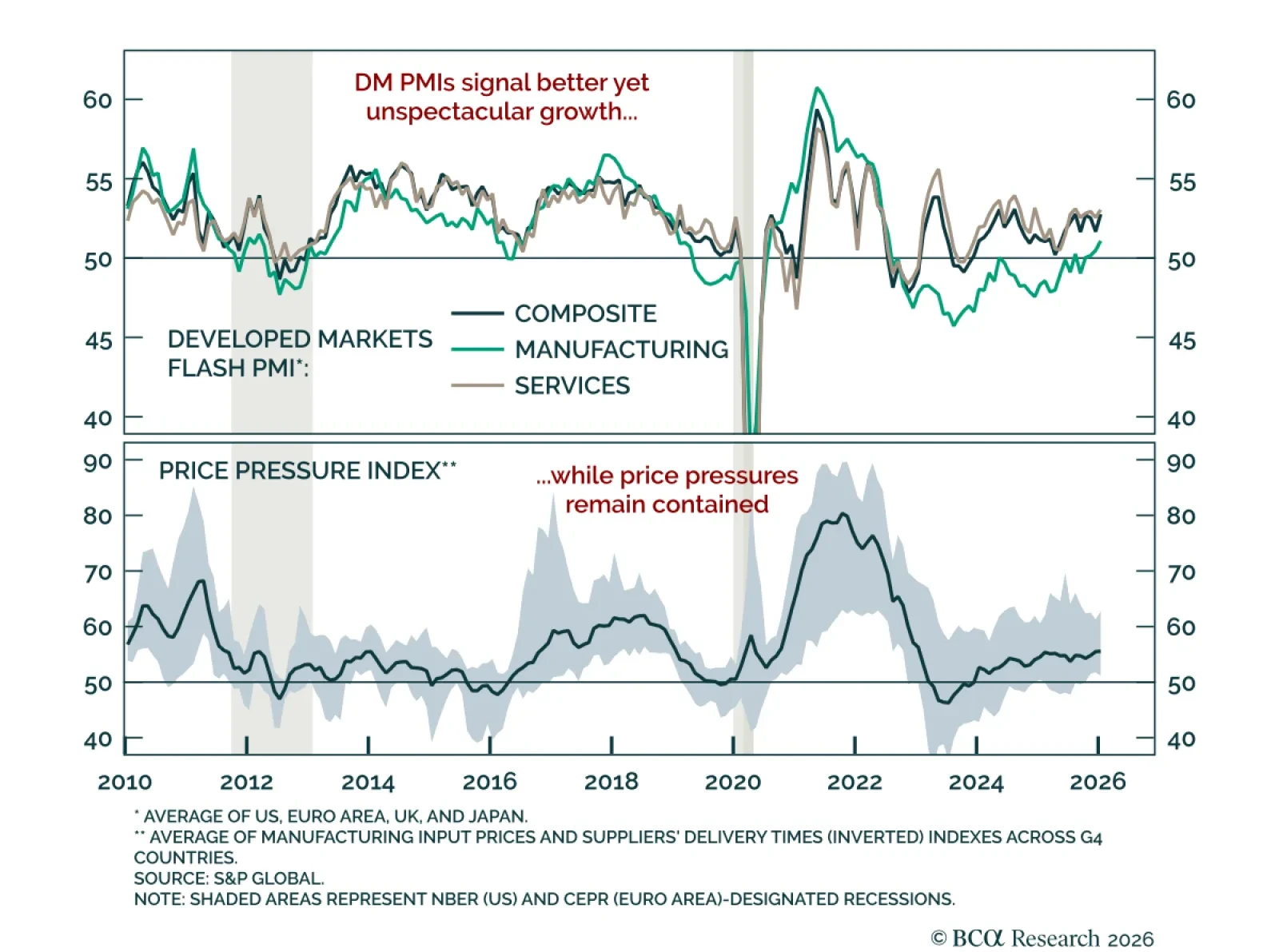 January flash PMIs point to better, though unspectacular, global growth momentum. Developed markets PMIs showed improvement in global growth momentum. PMIs have largely moved sideways through 2025, with manufacturing now recovering after trade uncertainty and…