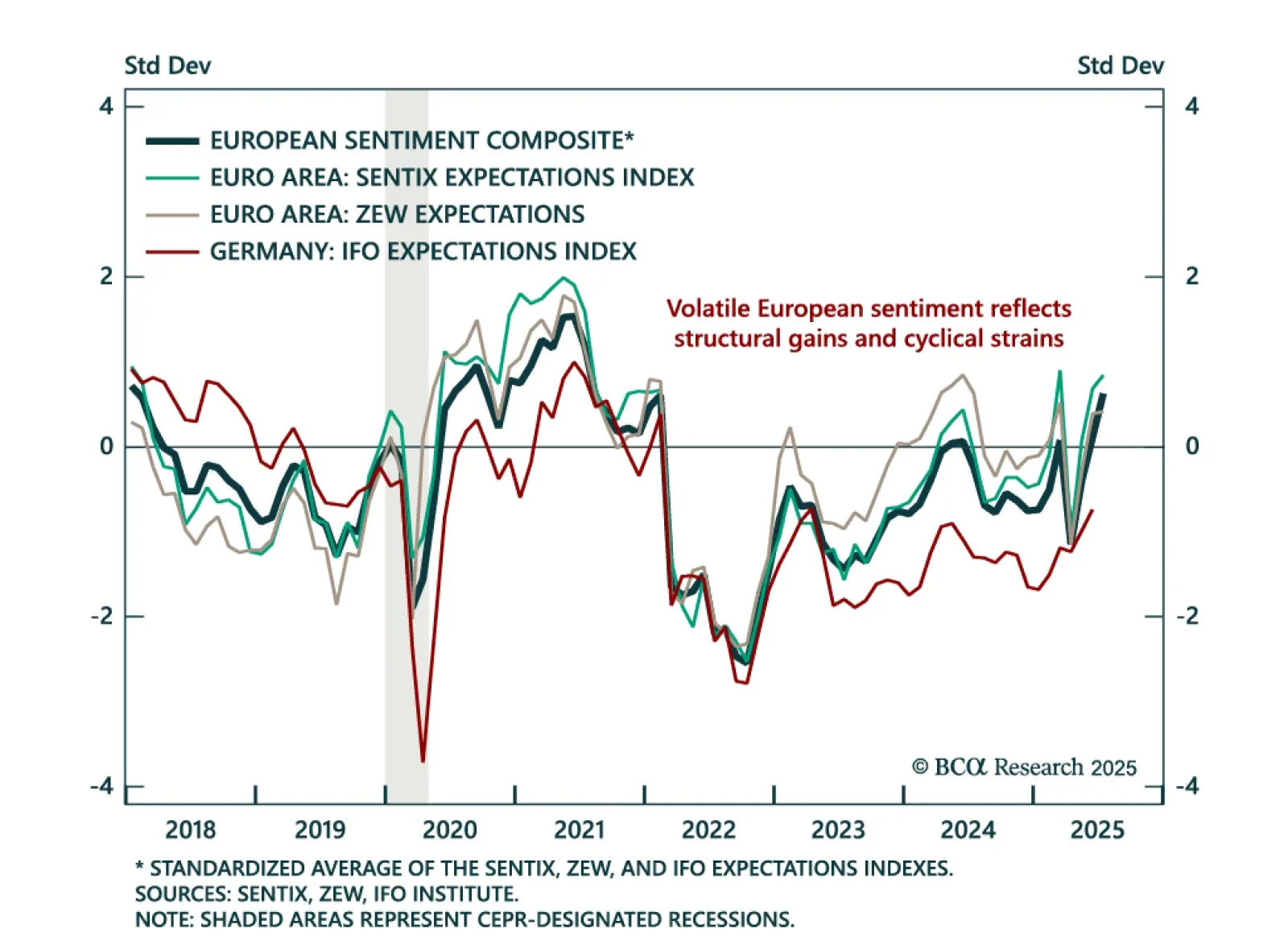 July’s ZEW data confirmed improving sentiment in Europe, but near-term conditions remain fragile, reinforcing a buy-on-dips stance for long-term investors. Euro area expectations rose to 36.1 from 35.3, with Germany also improving to…