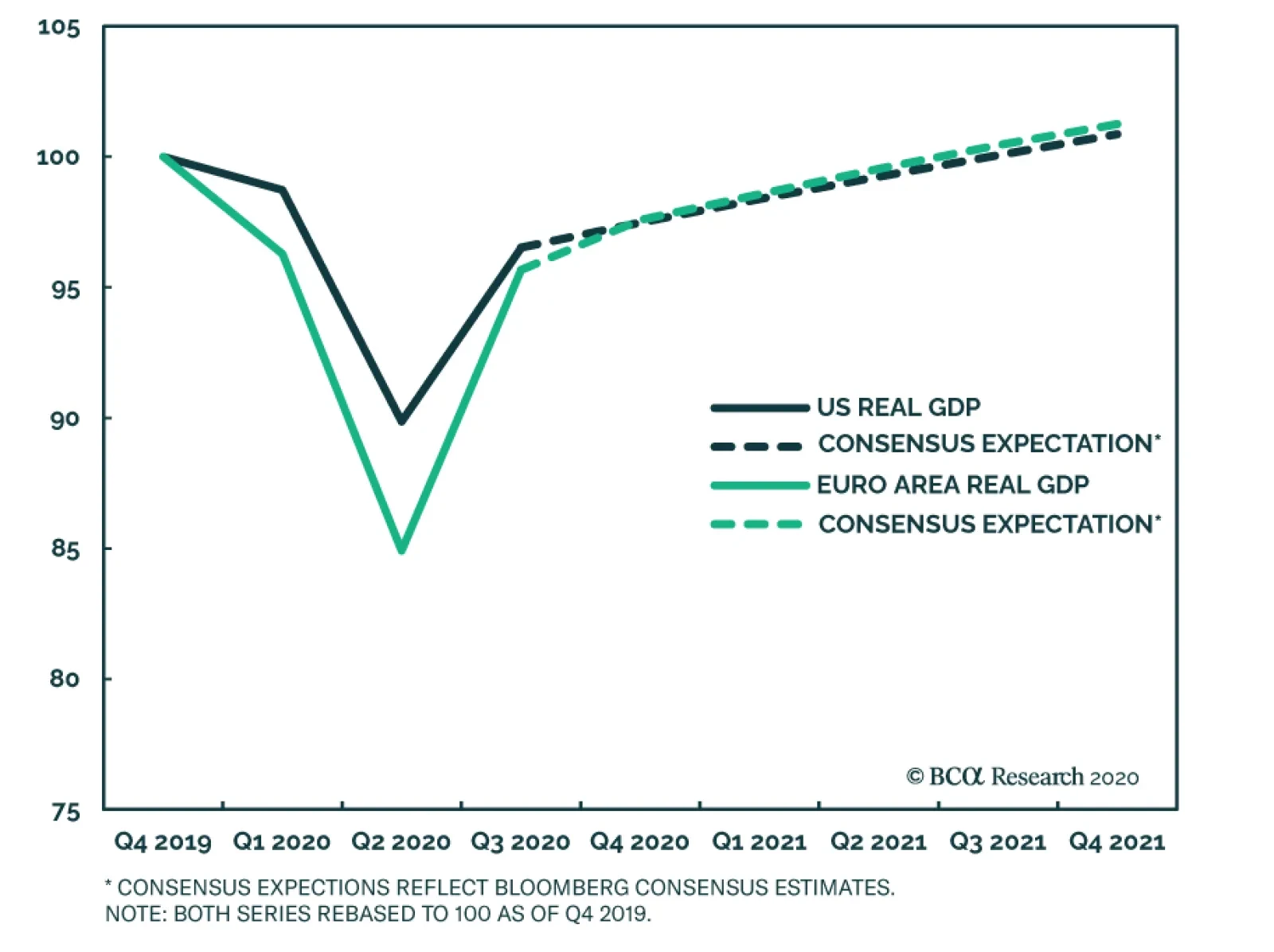 Alternative, high-frequency indicators of economic activity highlight that the US and euro area economies are already slowing in response to a new wave of COVID-19 infections. The chart above highlights Bloomberg's economic activity indexes for the US and…