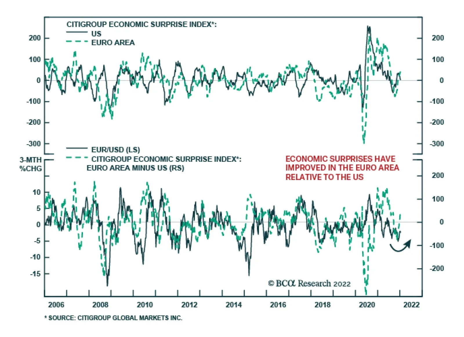 The Citigroup US economic surprise index peaked in late-November and has rolled over since then. It is now just barely in positive territory. Meanwhile, the Eurozone economic surprise index bottomed in mid-October and has been on…
