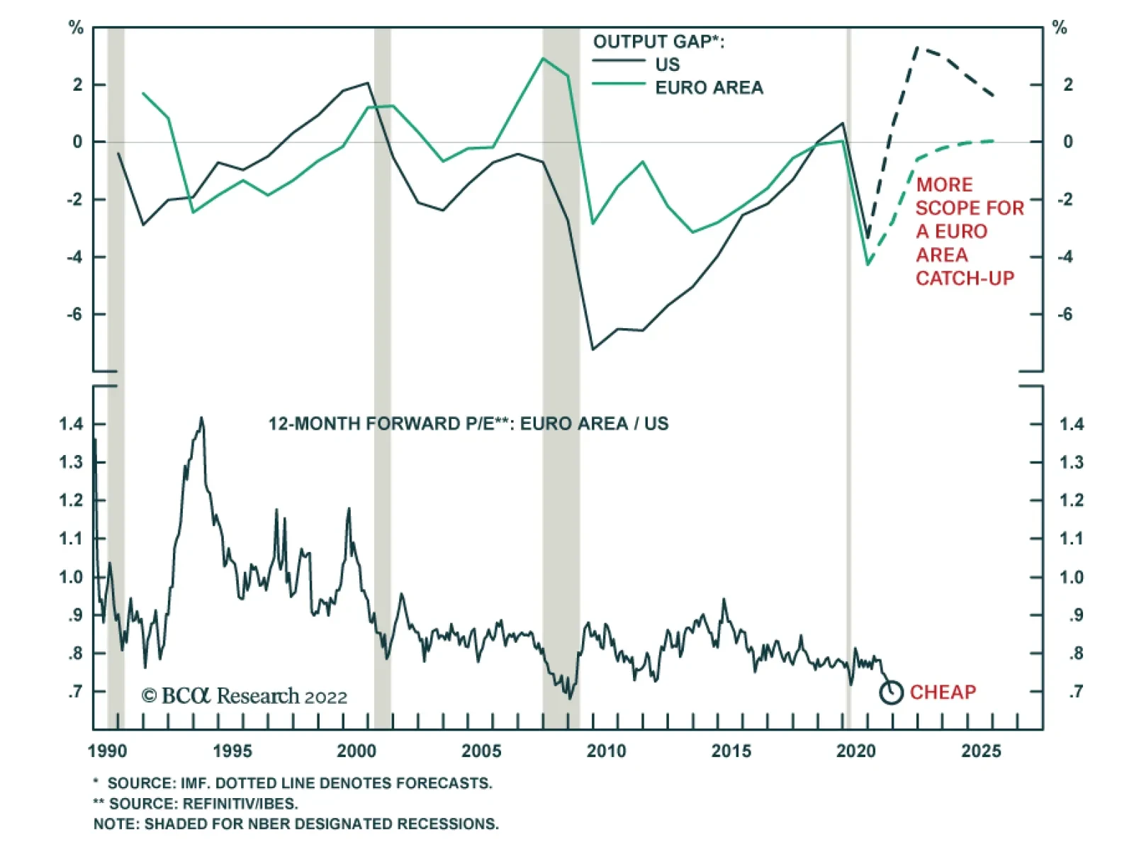 Euro Area equities underperformed US stocks by 14% in 2021. However, this underperformance has reversed so far this year with Eurozone stocks up relative to US ones. Nevertheless, risks to European equities remain elevated over…
