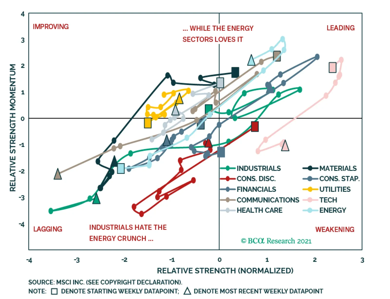 BCA Research’s European Investment Strategy service introduced their rotation graphs to assess the evolution of the relative trend and momentum of various assets. The rotation graph for European sectors suggests that…